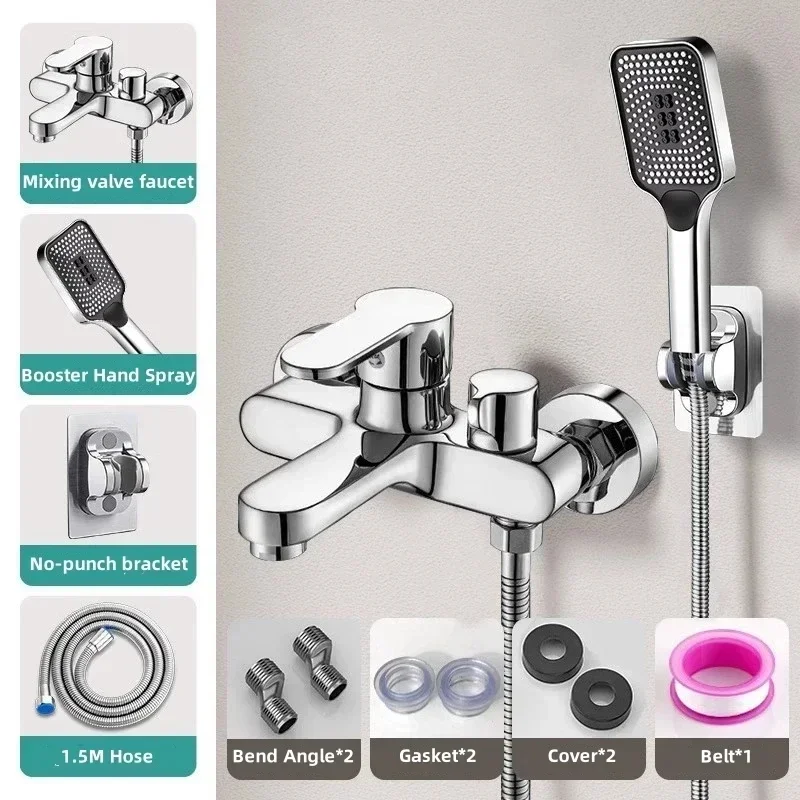 【Practical diversion function】Easily switch between the bathtub spout and the handheld showerhead by simply turning the faucet knob.The included 150 cm (59 inches) shower hose can easily cover any part of the body.