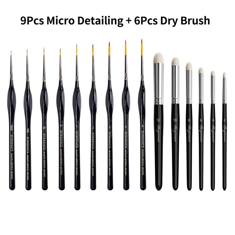 3/17Pcs Professional Miniature Painting Dry Brush Set Fine Detail Miniature Paint Brushes for Art Painting Acrylic Watercolor