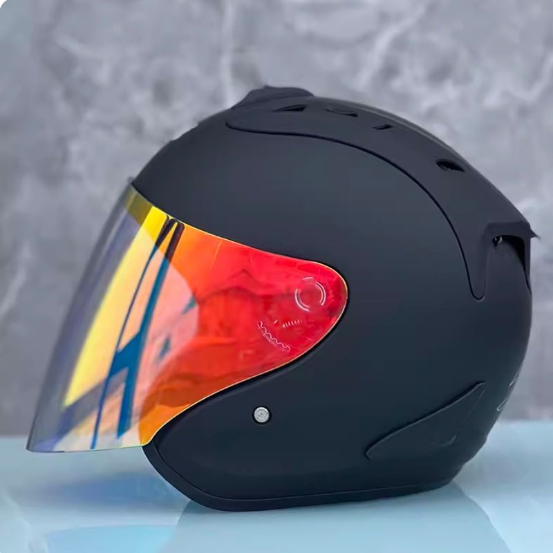 3/4 Open Face Helmet Ram4 Matte Black Motorcycle Helmet Summer Men and Women Jet Scooter Motobike Half Helmets Cascos Para Moto