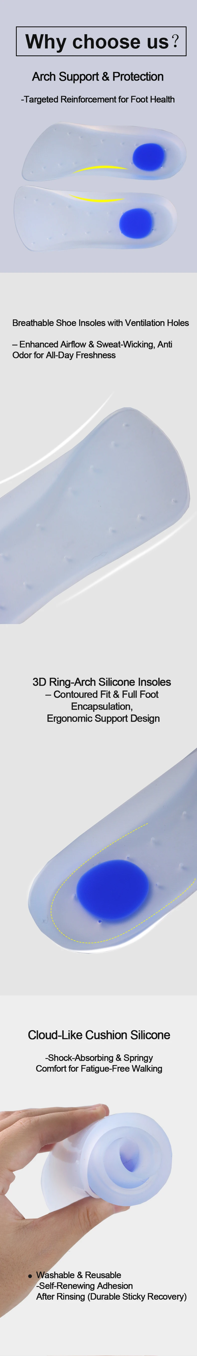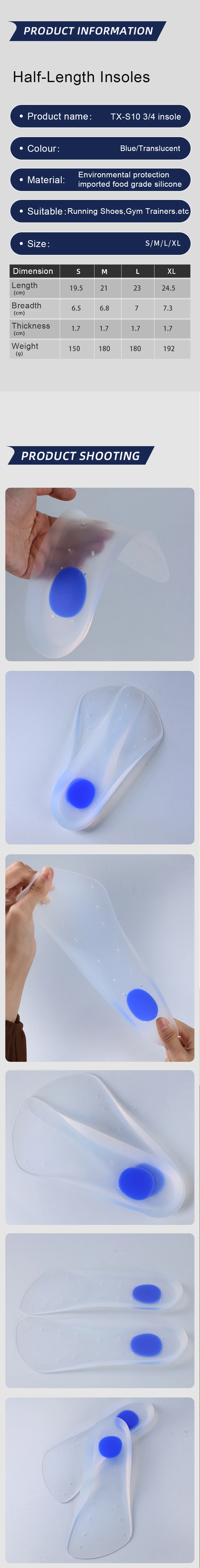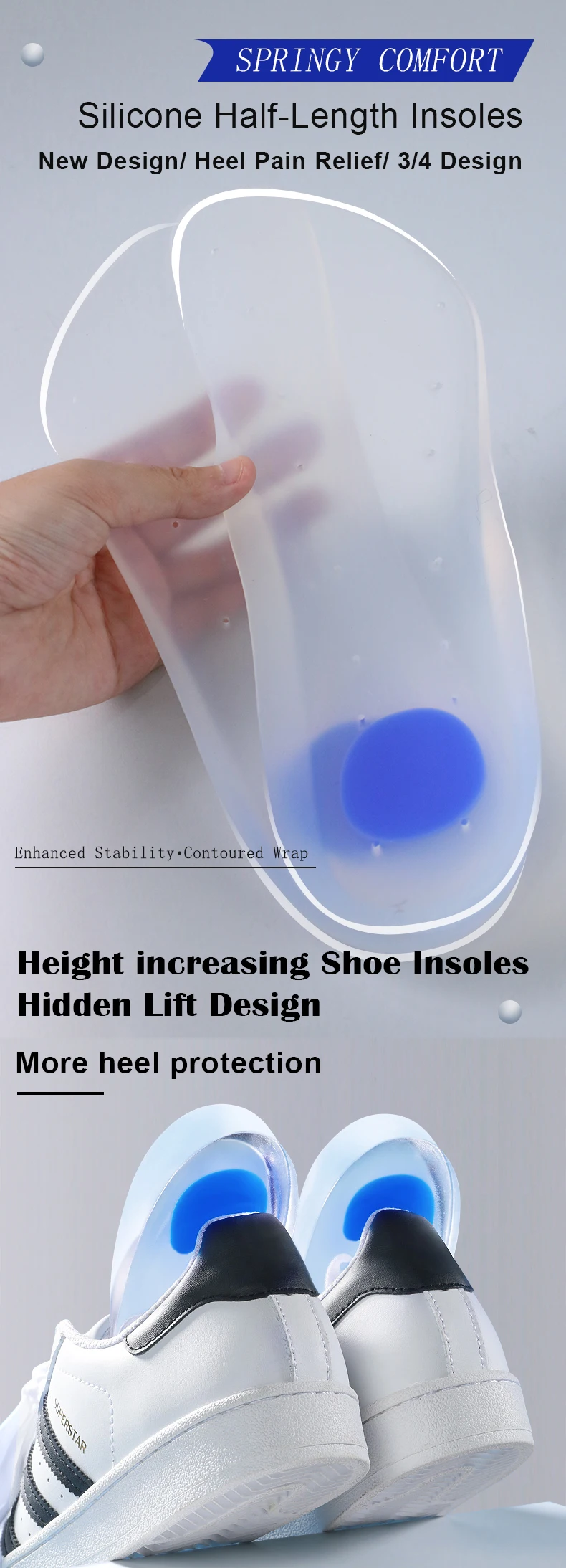 3/4 Unisex Silicone Orthopedic Insoles Medical Super Soft High Elasticity Shoe Pad Anti-pain Cushion Arch Support Running Insole