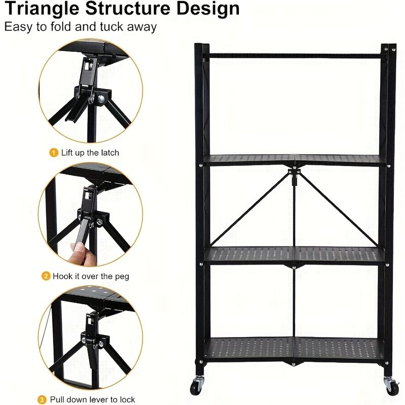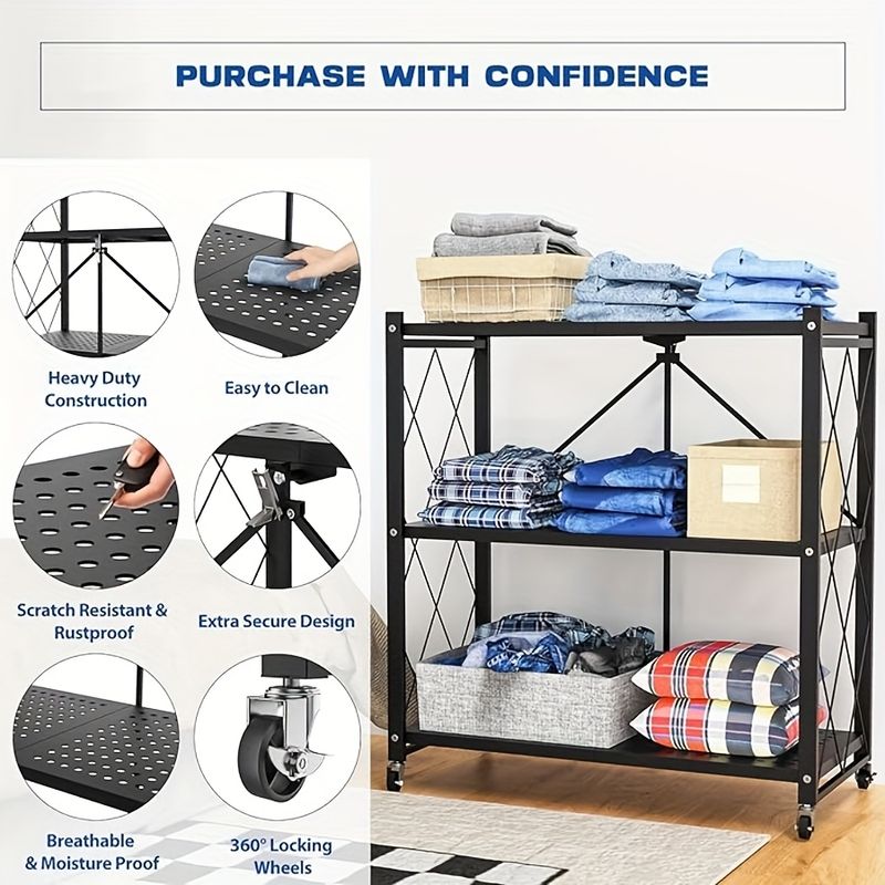 3/4/5 layer metal storage rack with wheels, foldable and portable storage rack, suitable for home, office, and garage storage