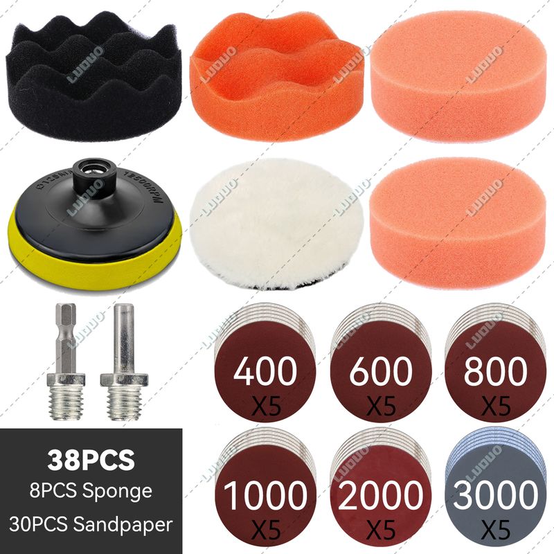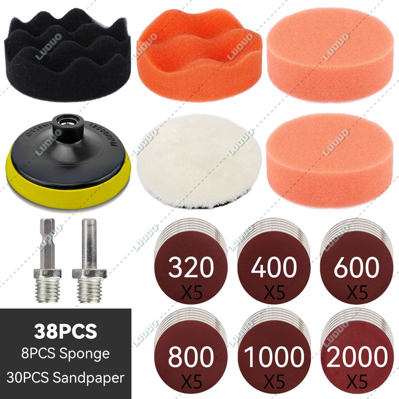 3/4/5/6 inch Car Detailing Polishing Buffing Sponge Wool Pad Headlight Restoration Sandpaper For Sanding Waxing Cleaning Washing