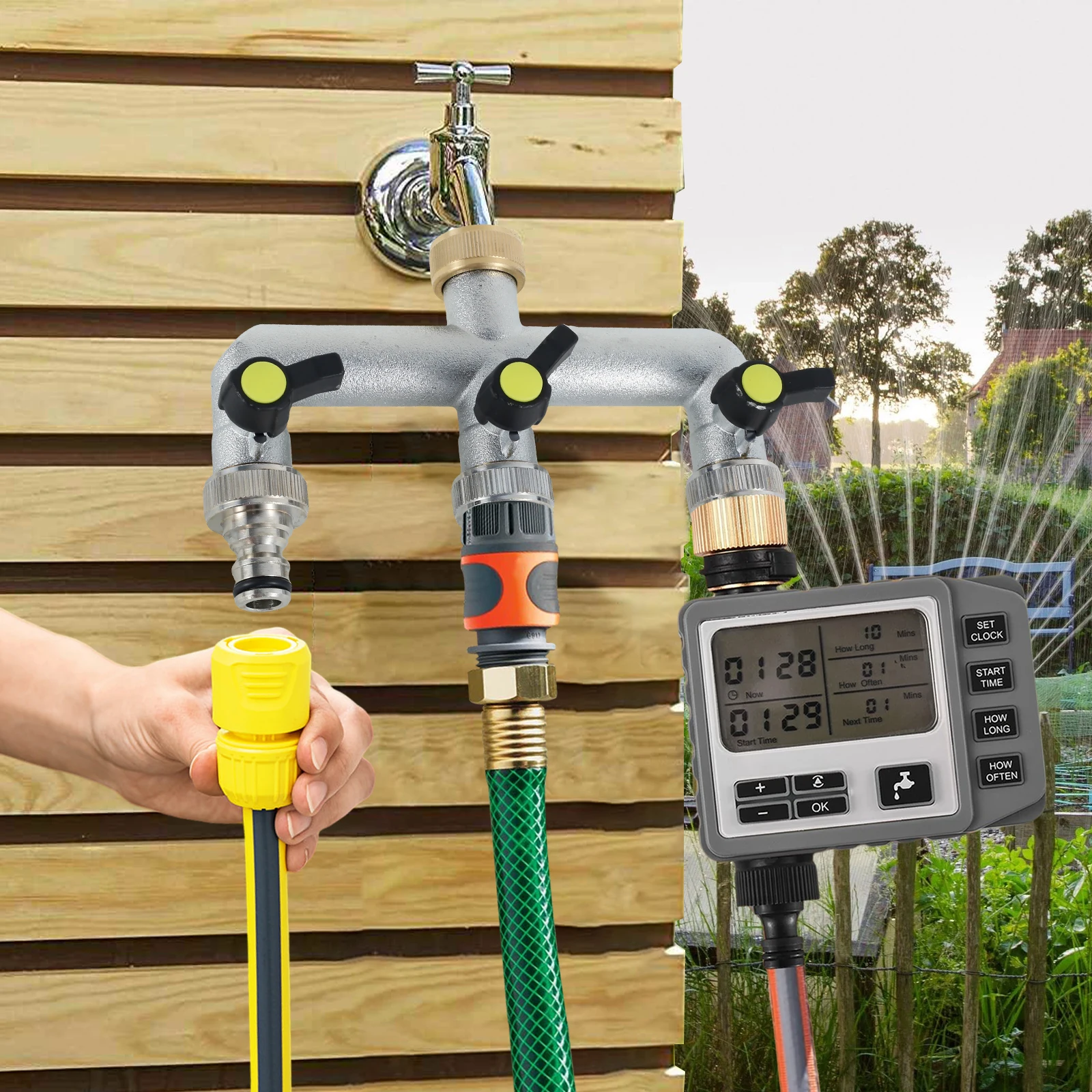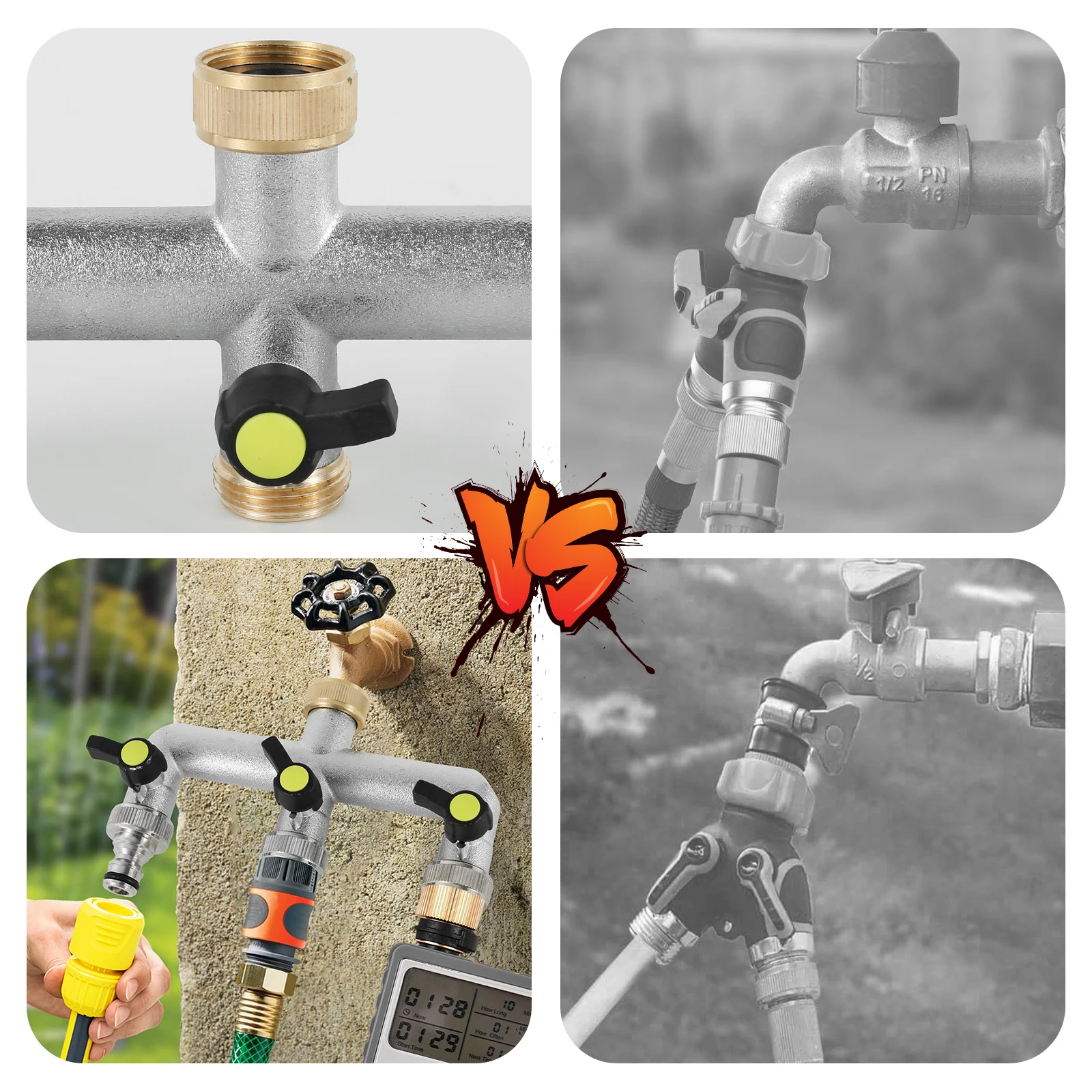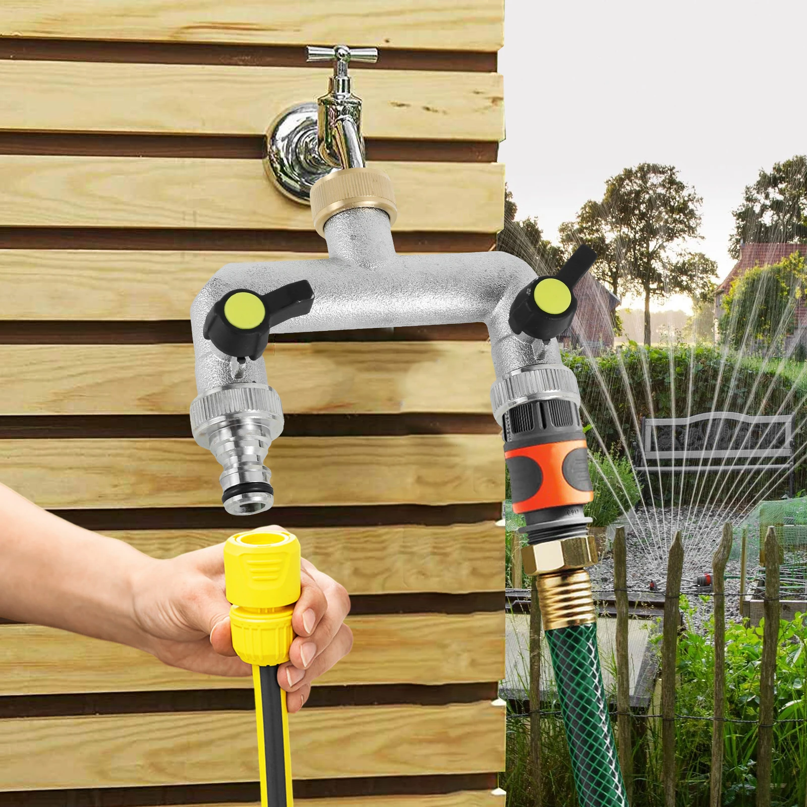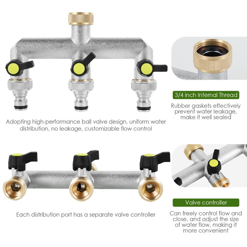 3. [Wide Application] This spigot splitter is suitable for all North American standard 3/4-inch faucets. It is suitable for standard garden hoses, watering fixtures, automatic watering systems, campers, drip irrigation, washing machines, faucets, lawn sprinklers, nozzles, and dishwashers.