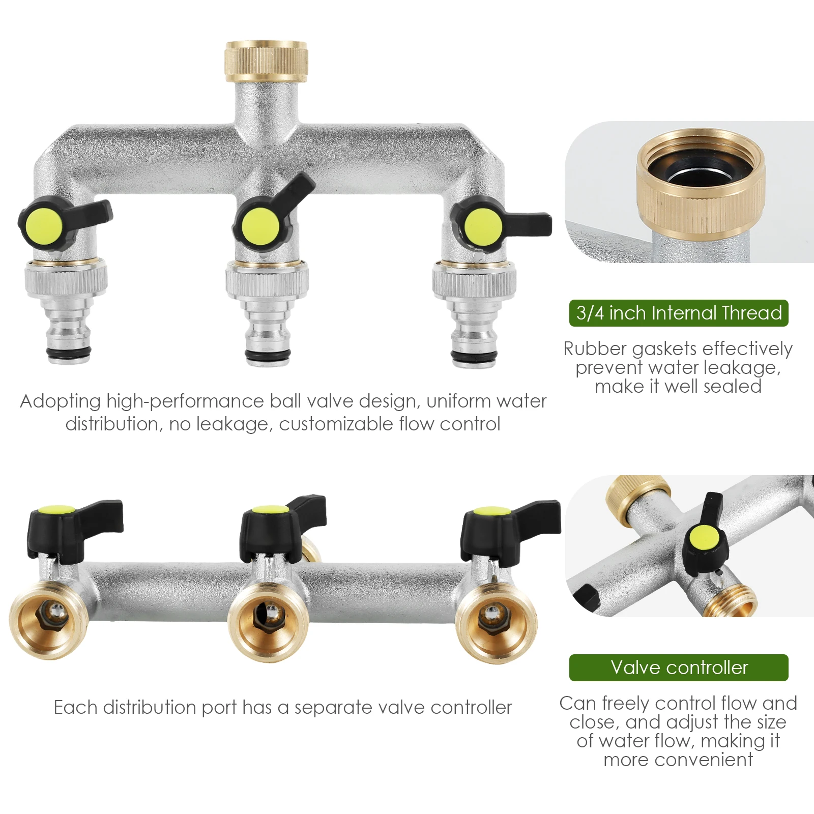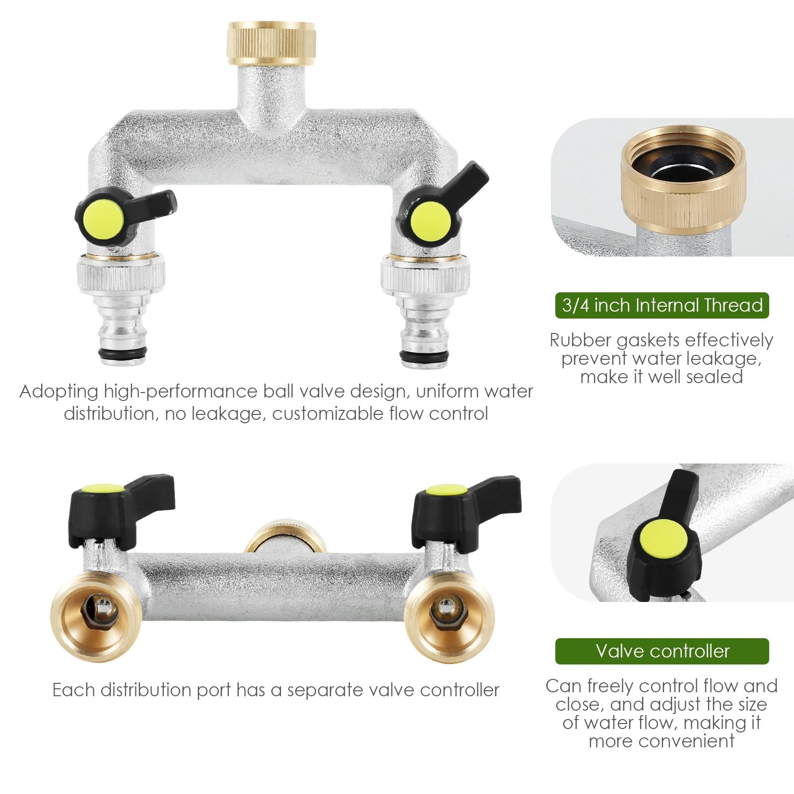 1. [High-Quality Material] This hose splitter is made of zinc alloy with a chrome-plated finish to make sure it is not easy to rust and not easy to break for durability. It works in a temperature range of -20℃ to 80℃ with a working pressure of 1.6 MPa.