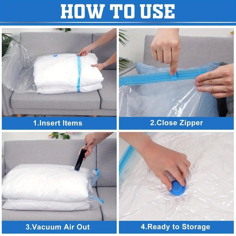 ✅ Prevents Dust Accumulation – Keeps rarely used clothes clean and fresh. ✅ Great for Storing Baby Clothes – Gentle material safe for delicate infant garments. ✅ Protects Against Insects and Mites – Airtight seal blocks pests. ✅ No Need for Expensive Storage Solutions – Save money by optimizing existing space. ✅ Perfect Gift for Organizers – Great choice for neat freaks and home organizers. ✅ Minimalist Design Matches Any Home Style – Sleek and clean appearance. ✅ Compatible with Most Vacuum Cleaner Brands – No need for special attachments. ✅ Bags Stay Flat When Compressed – Easy to stack or slide under beds. ✅ Includes Instructions for First-Time Users – Simple for anyone to use. ✅ Helps with Emergency Preparedness Storage – Ideal for packing and preserving extra bedding/clothes. ✅ More Customer Reviews ⭐⭐⭐⭐⭐ "I live in a tiny apartment, and these storage bags literally doubled my closet space. I didn’t expect them to be this effective!" — Sophie L., UK ⭐⭐⭐⭐ "Very easy to use. Just a regular vacuum cleaner, and you're done. I stored all our winter gear in them without any issues." — Jens H., Sweden ⭐⭐⭐⭐⭐ "Excellent airtight seal. No leaks at all, even after 3 months. I’ve already recommended them to friends!" — Fatima Z., Saudi Arabia ⭐⭐⭐⭐⭐ "I bought these for my Airbnb rental to organize extra linens and pillows — guests never see clutter anymore. Love it!" — Alex P., Canada ⭐⭐⭐⭐ "The quality is better than expected. The plastic is thick, and the zipper doesn’t break like cheap versions." — Ivan K., Poland ⭐⭐⭐⭐⭐ "Perfect for students in dorms — saved so much space under my bed. Great value for the price." — Rina C., Singapore
