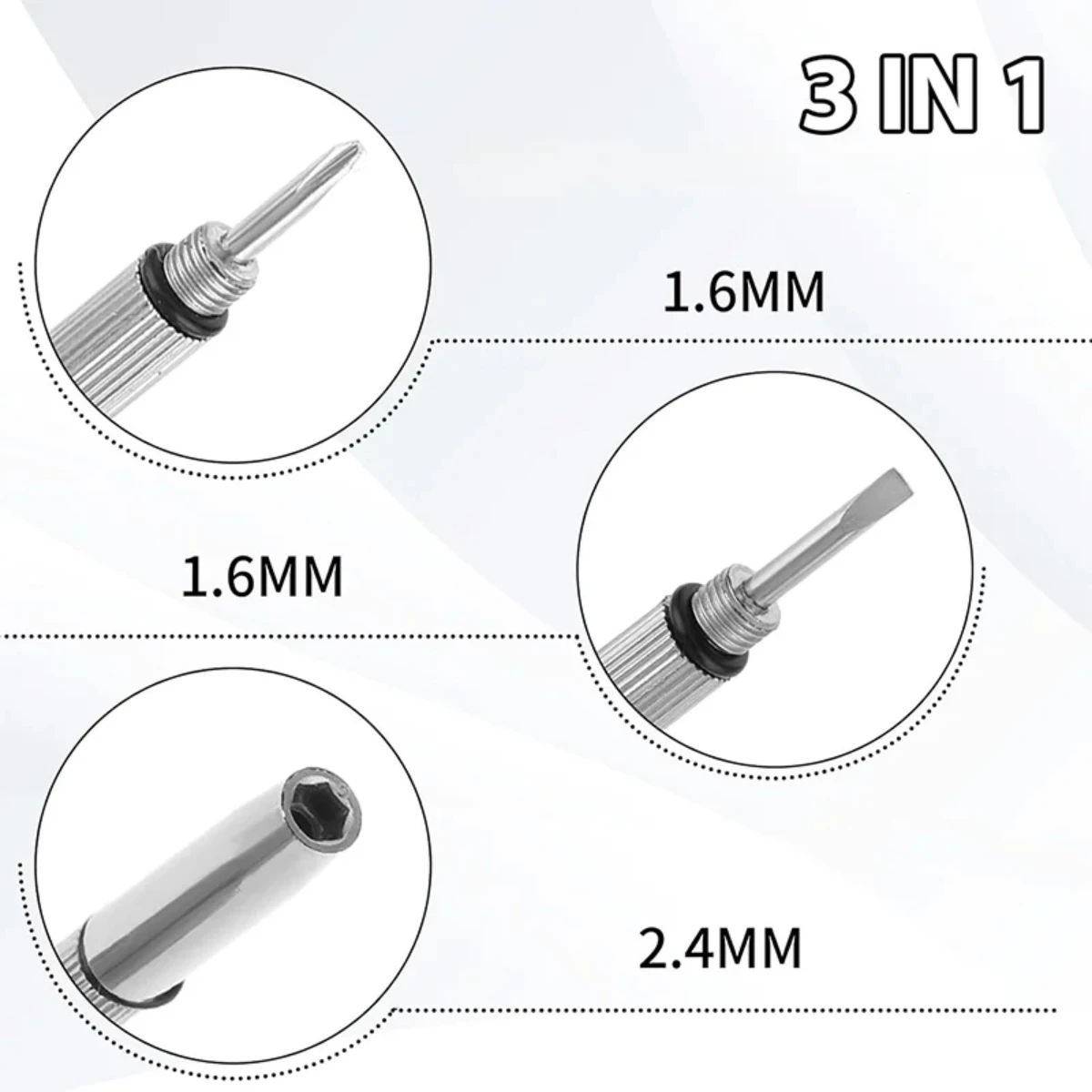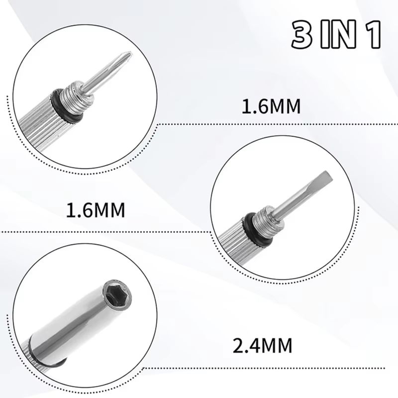 3-in-1 Accessory Tool: Flat head screwdriver / cross screwdriver / Star nut driver