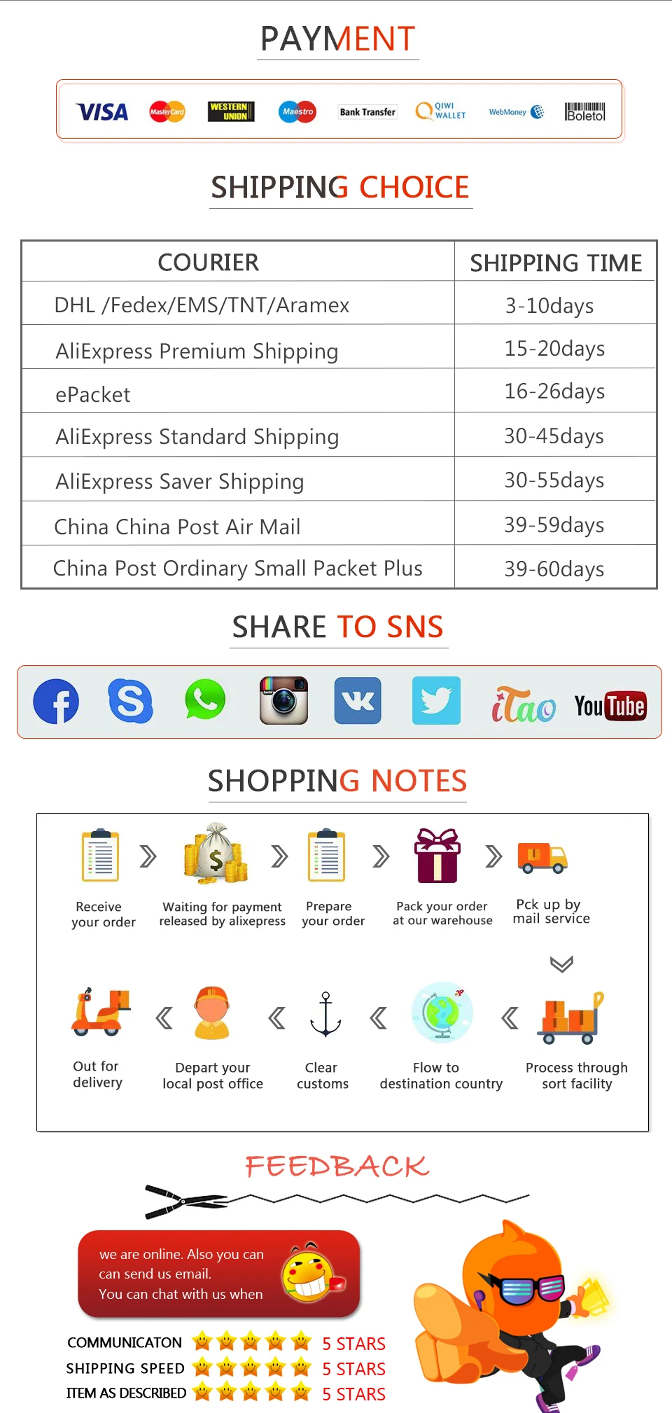 We accept the following payment options: