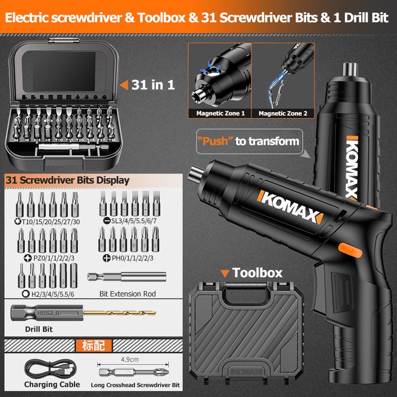 30 in 1 Electric Screwdriver Battery Rechargeable Cordless Screwdriver Powerful Impact Wireless Screwdriver Drill w Storage Box