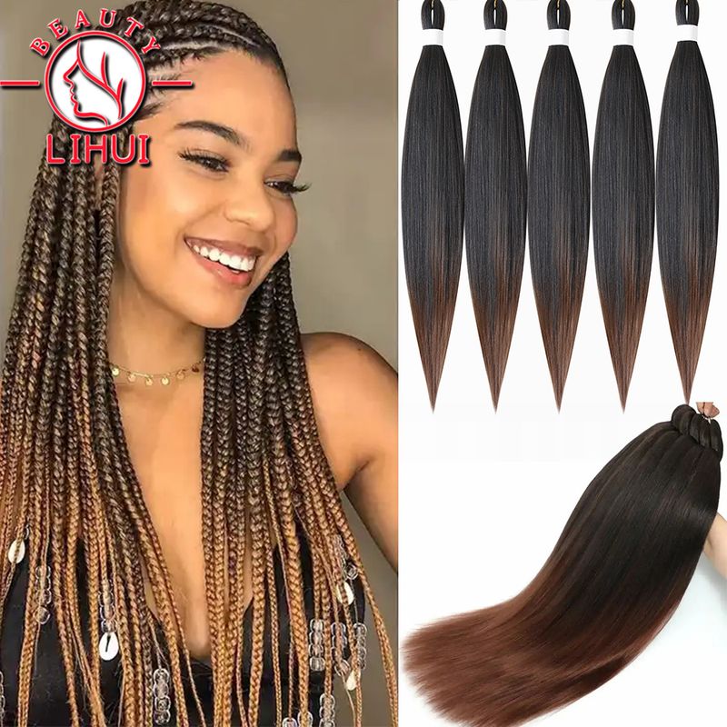 30" Ombre Brown Pre Stretched Braiding Hair YAKI Straight Jumbo Braids Hair Extensions Synthetic Bulk Hair Wholesale Fake Hair