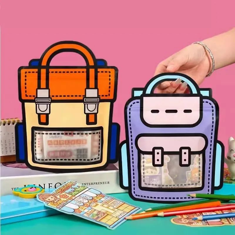30/2PCS Cartoon Self-Sealing Snack Bags Schoolbag Shape Biscuit Candy Handbags Children's Day Kids Birthday Gift Packaging Bag