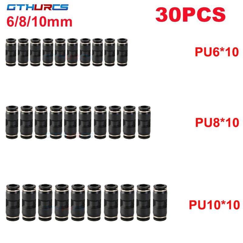 30/40/50/60/70pcs High Quality Pneumatic Fitting Black Straight Push Plastic Connector 6/8/10/12mm Trachea Connector PU