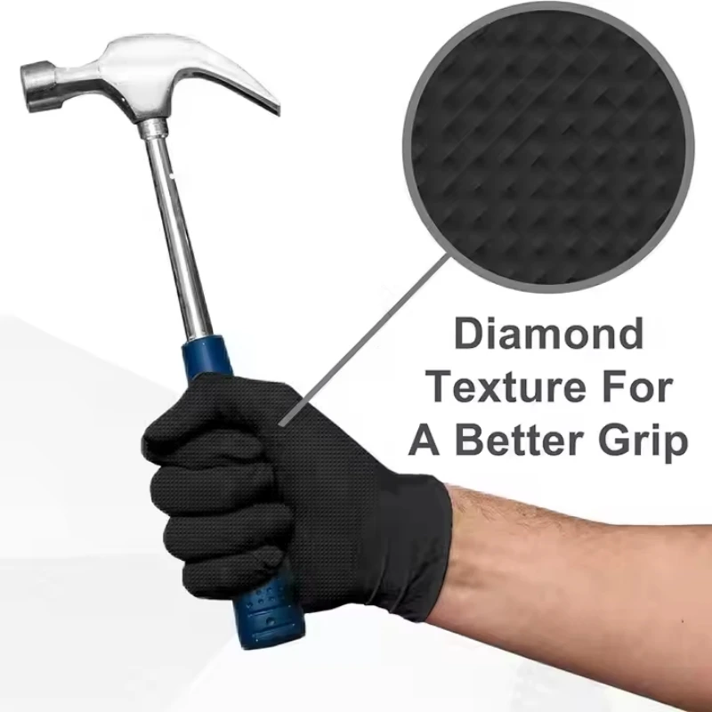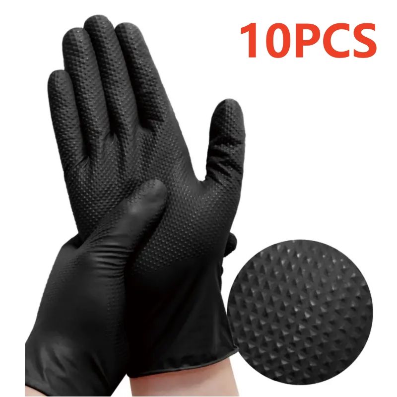 10/30/50PCS Black Nitrile Gloves Disposable 8Mil Thick Heavy Duty Industrial Safety Gloves Diamond Textured Mechanics Work Gloves