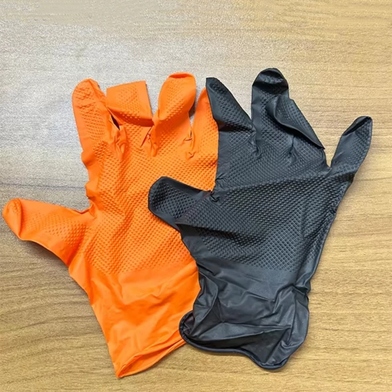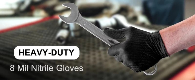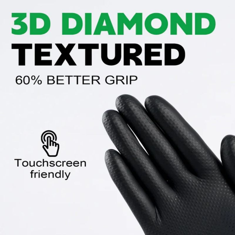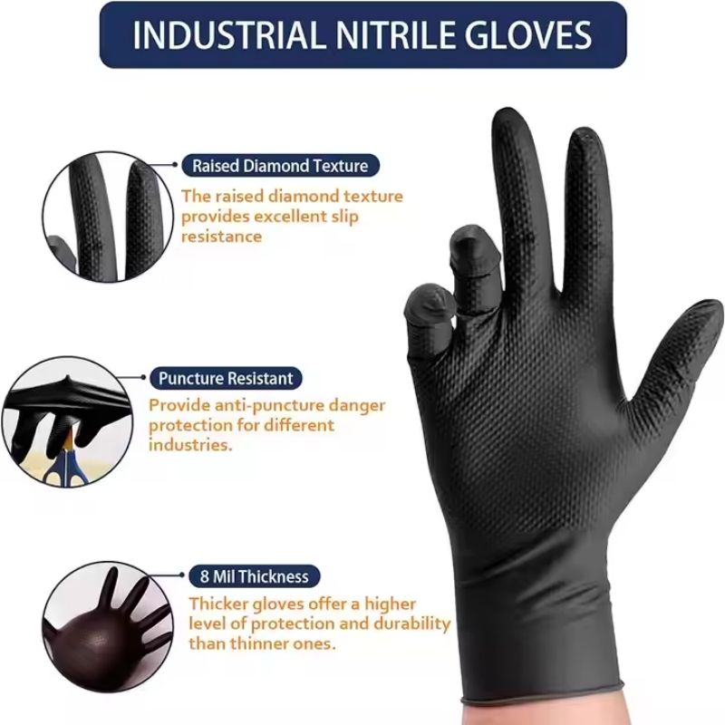 1. Enhanced Safety & Protection: Engineered with 8mil thickness, our heavy duty nitrile gloves provide exceptional puncture resistance, protecting against cuts, scrapes, and chemicals. These diamond grip nitrile gloves are perfect for construction, automotive, and manufacturing tasks - a reliable choice for high-risk environments.