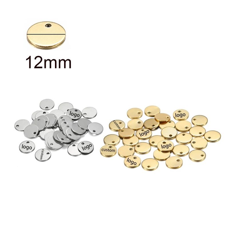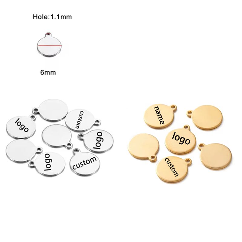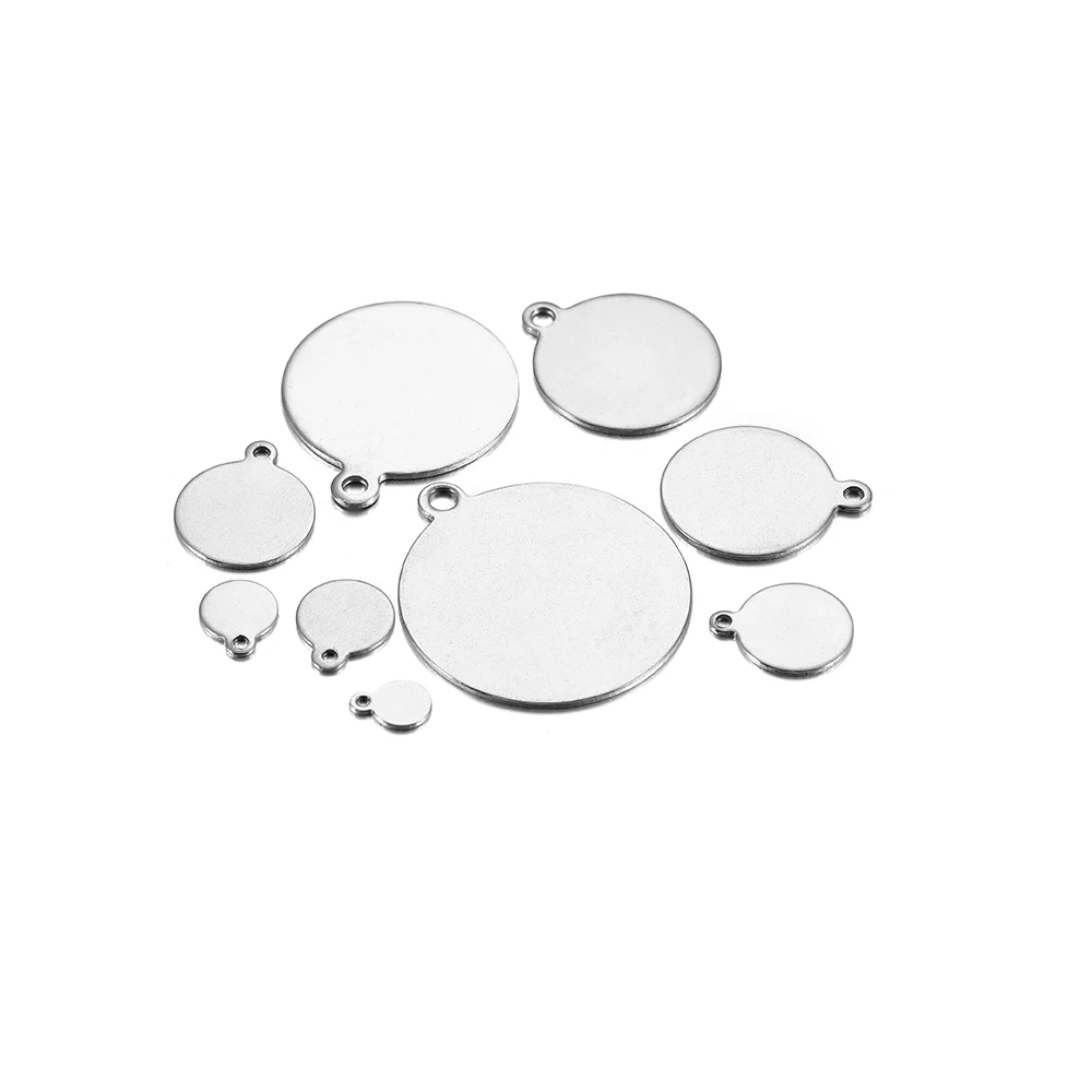 30/50pcs Laser Engraved Logo Tags Stainless Steel Circle Tag 6mm-12mm Round Charm Engravable Pendants for Jewelry Making