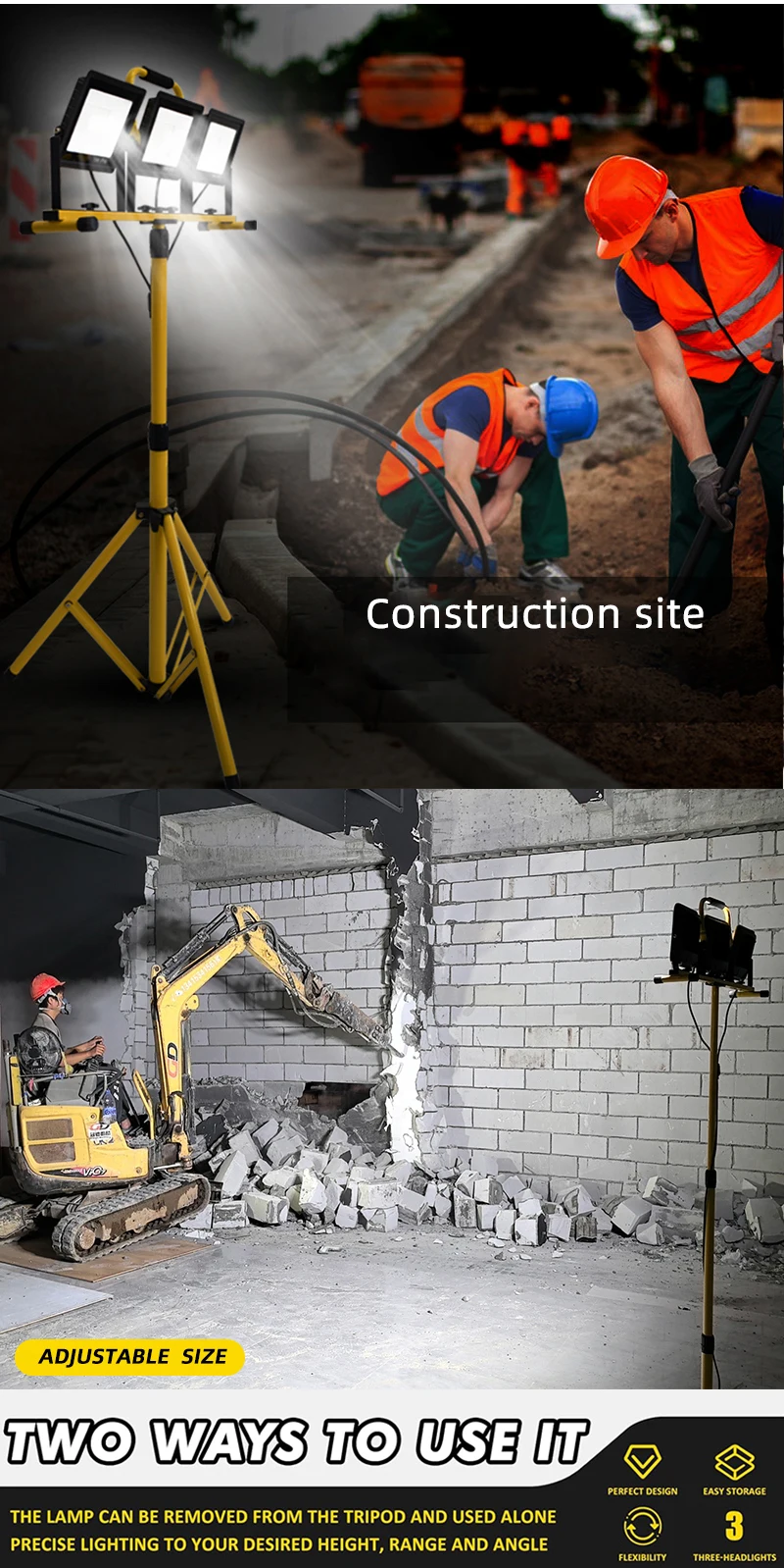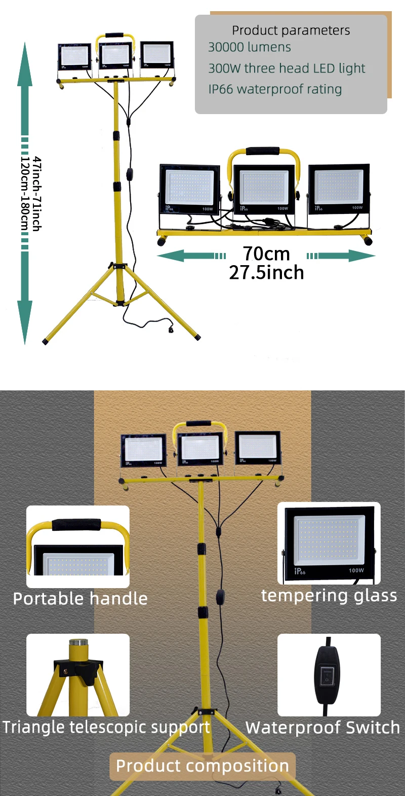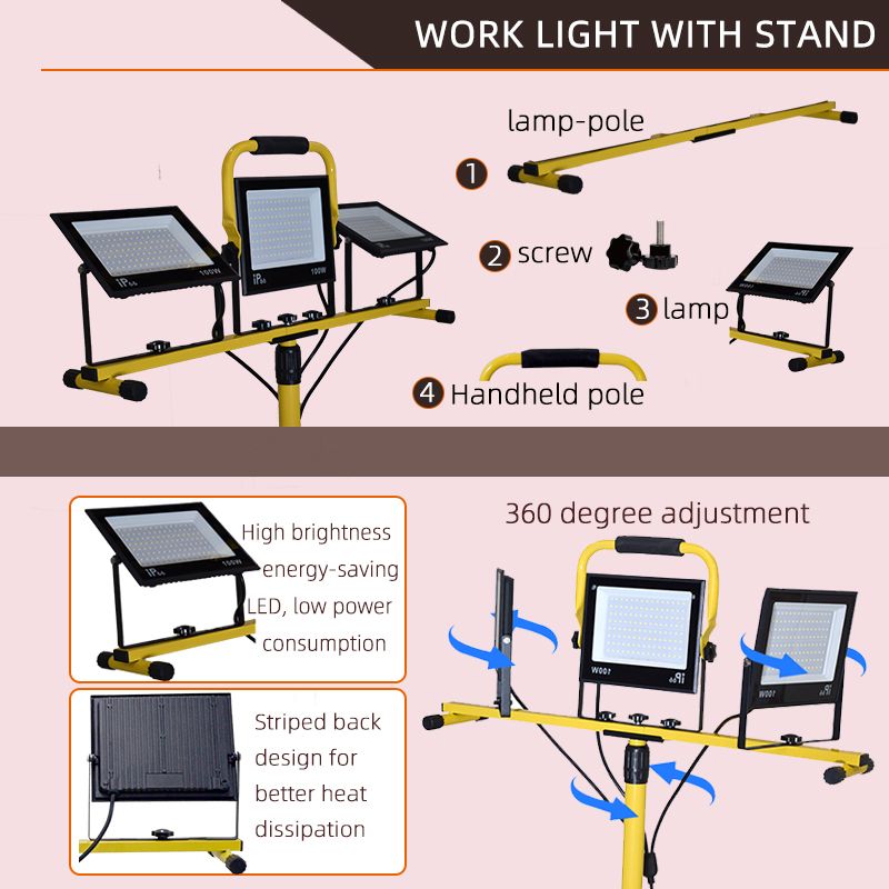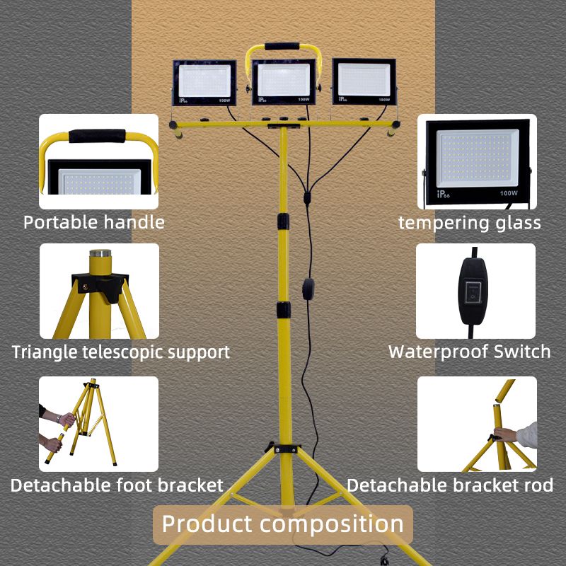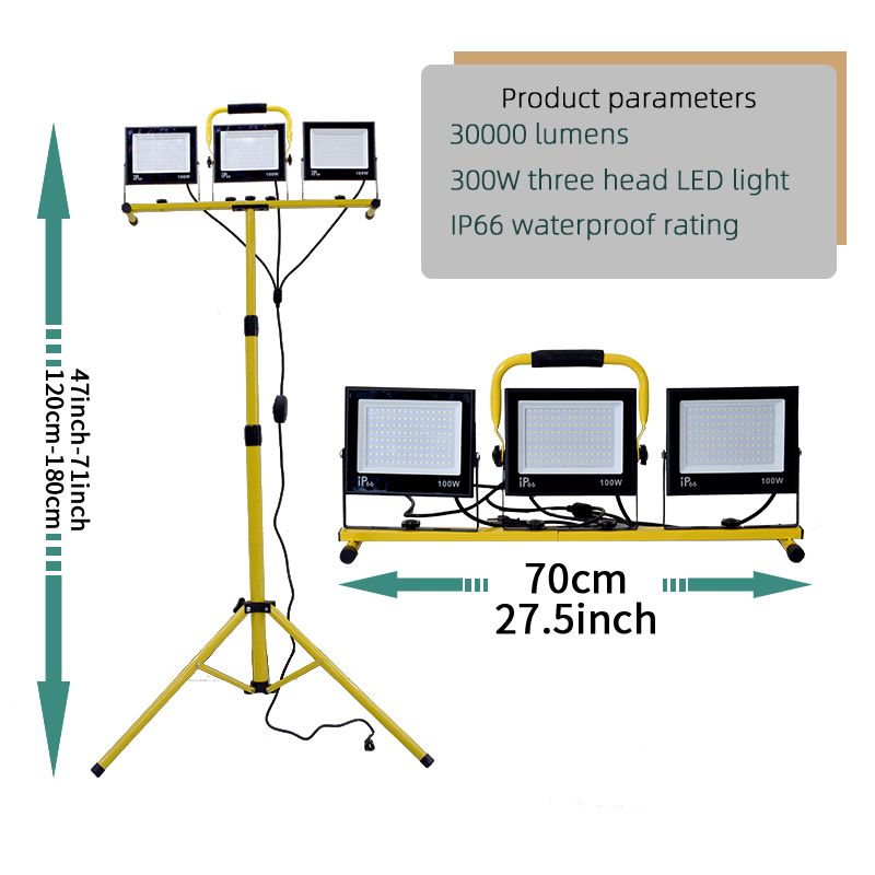 30000 Lumen LED Work Light with Stand - 3 Head Portable flood light for Job Site Workshop Garage Construction Site Lighting
