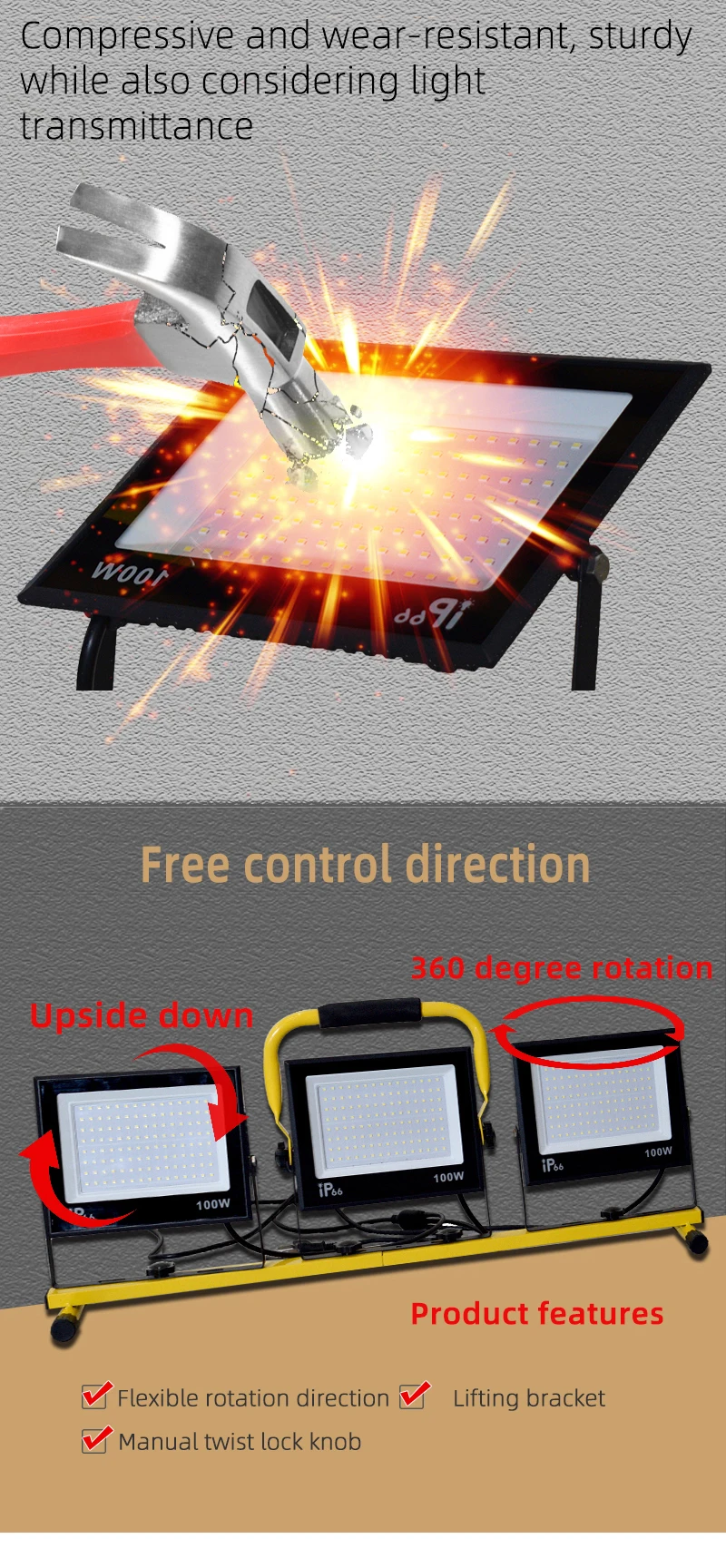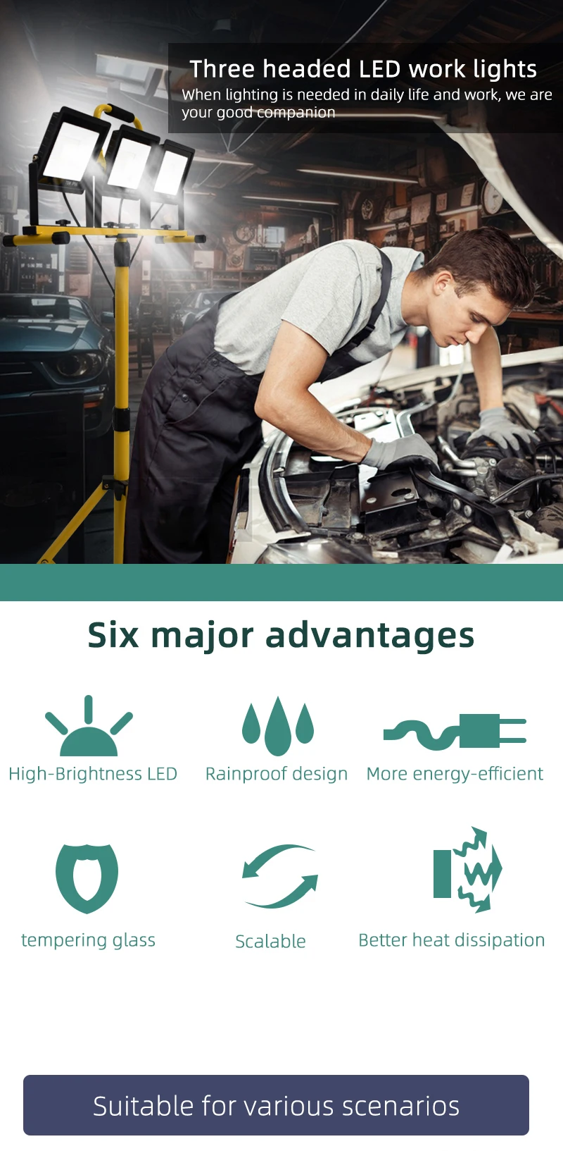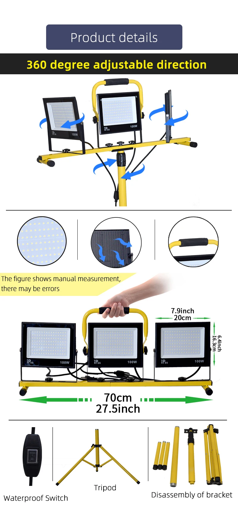 30000 Lumen LED Work Light with Stand - 3 Head Portable flood light for Job Site Workshop Garage Construction Site Lighting