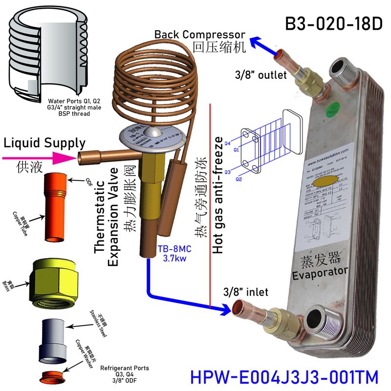 3000kcal heat exchangers of heat pump water heater's working assemblies complete provide one stop solutions for 1.5HP compressor