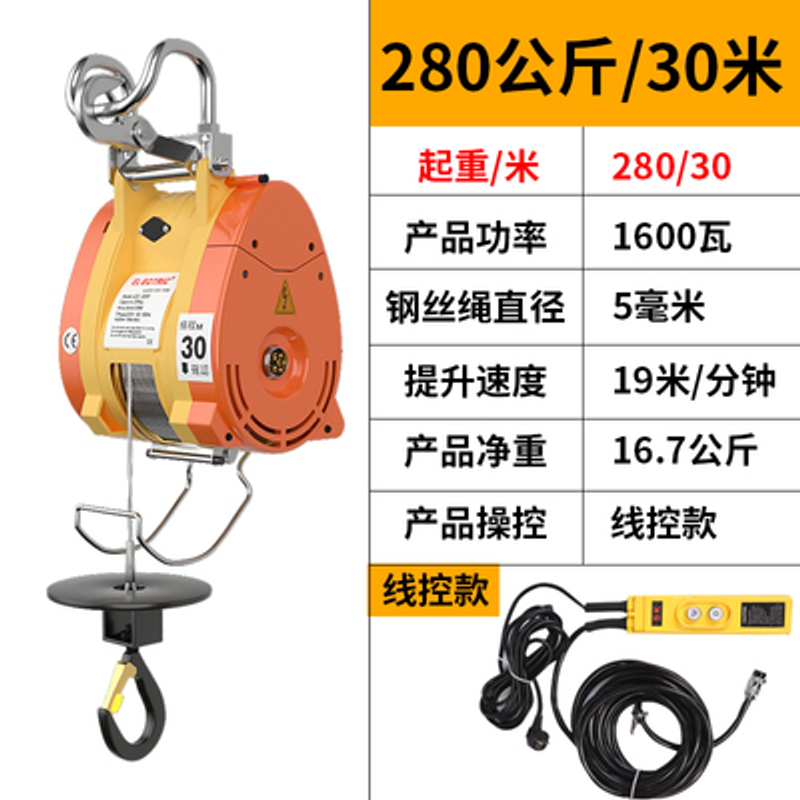 220V/1300W Household Portable Suspended Small Hoist Hoist Ultra High Efficiency Cable Winch Mini Electric Hoist Crane