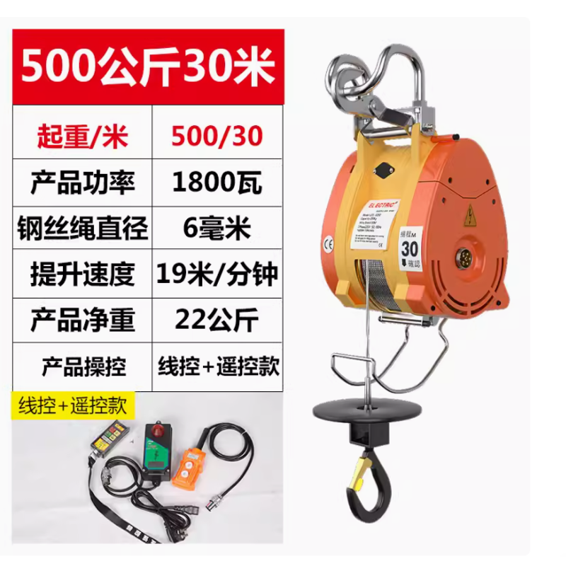220V/1300W Household Portable Suspended Small Hoist Hoist Ultra High Efficiency Cable Winch Mini Electric Hoist Crane