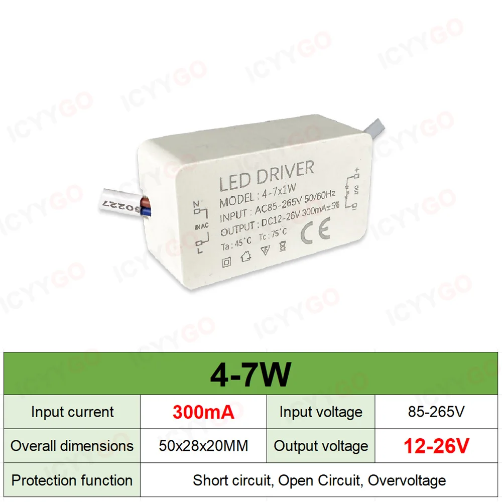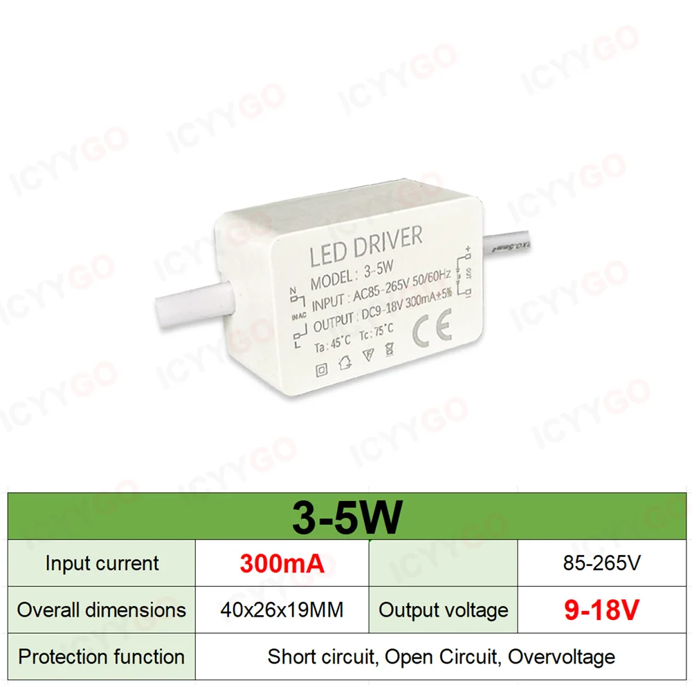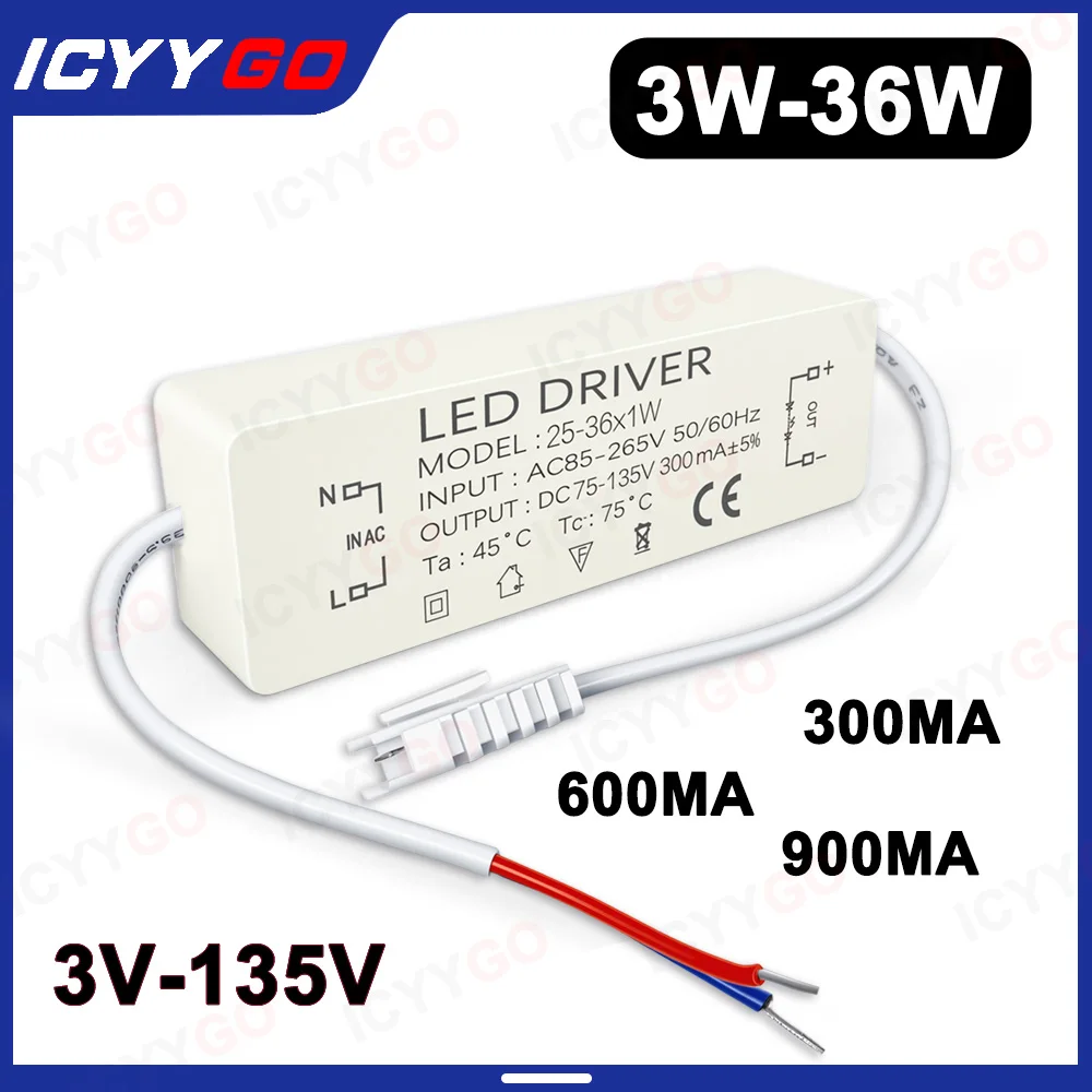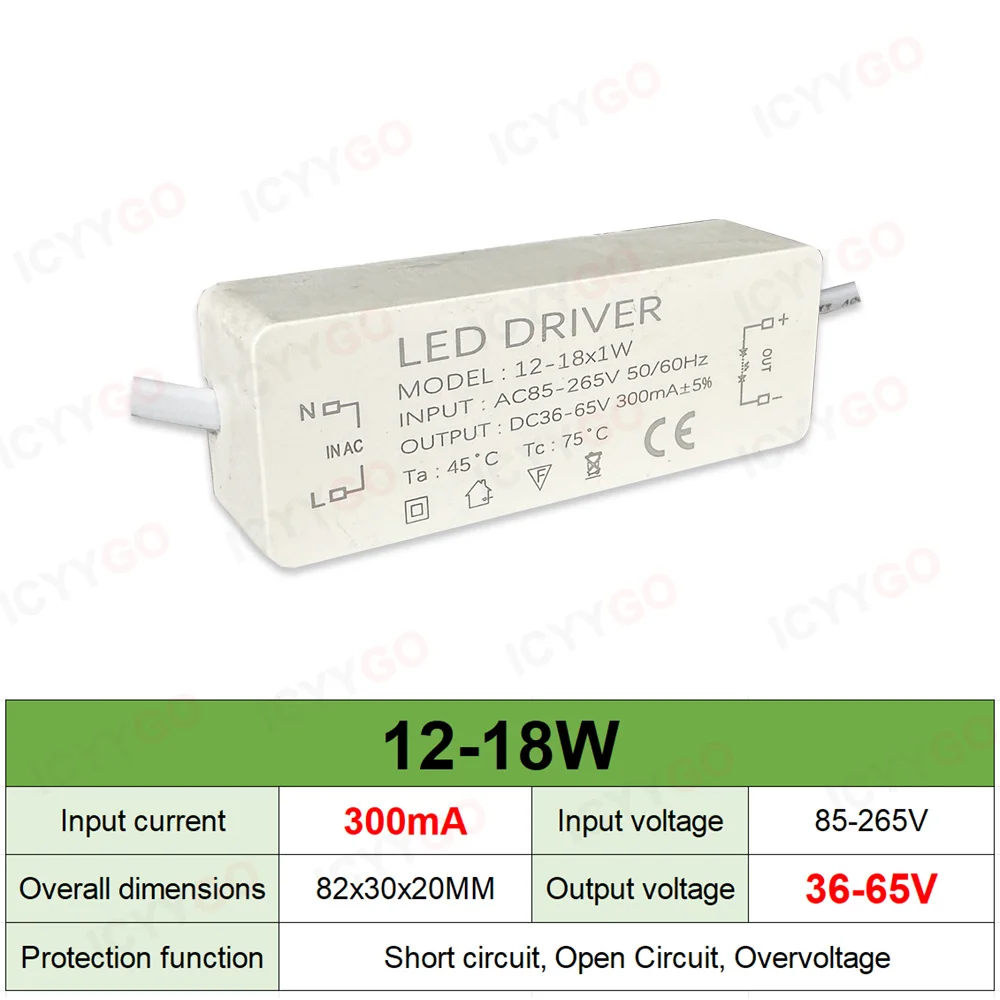 300mA 600mA 900mA LED Drivers 5W 4-7W 8-12W 12-18W 18-25W 25-36W LED Power Supply Lighting Transformer Constant Current Driver
