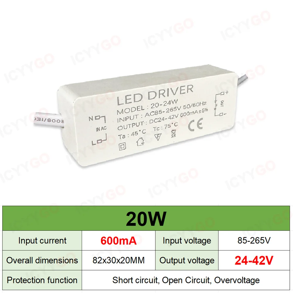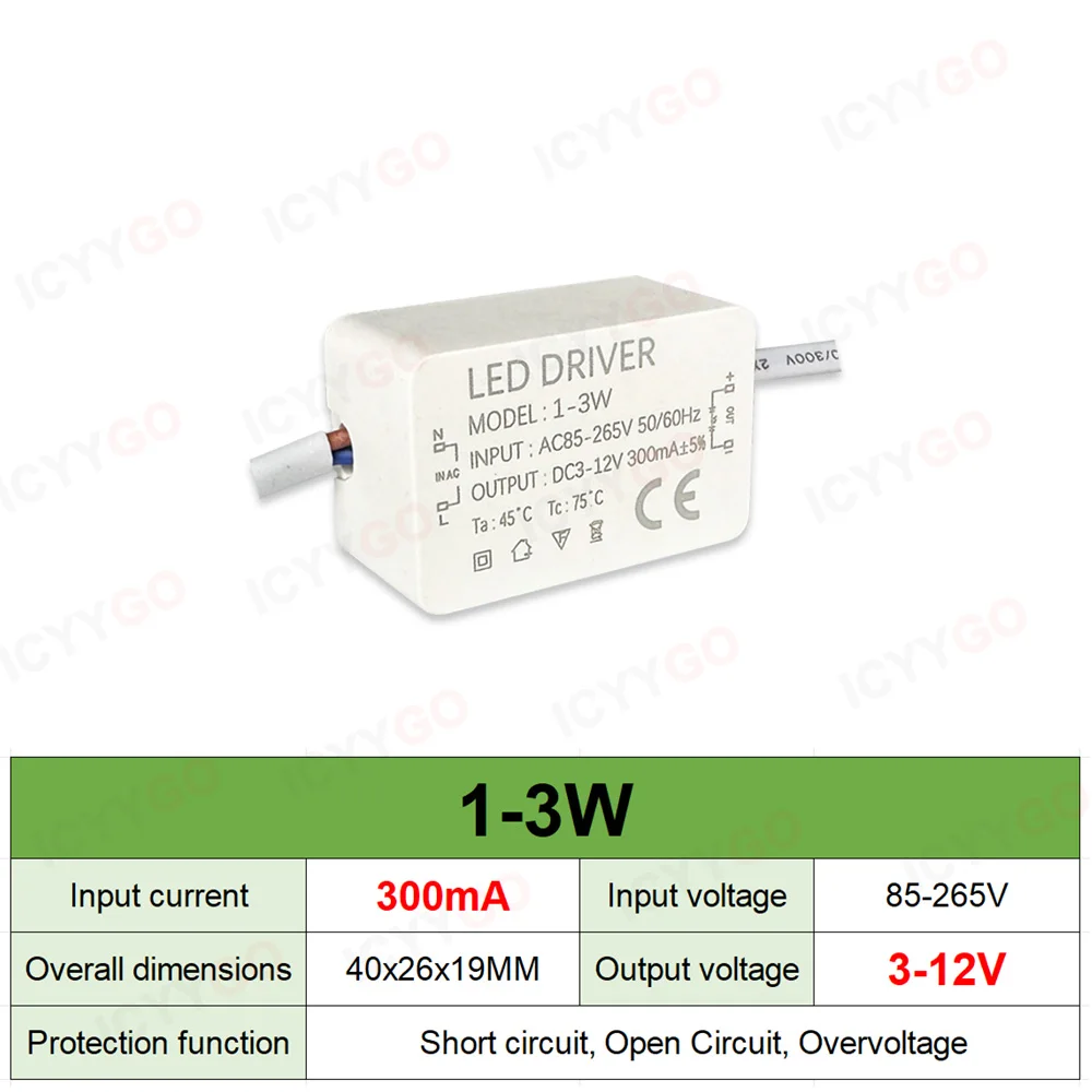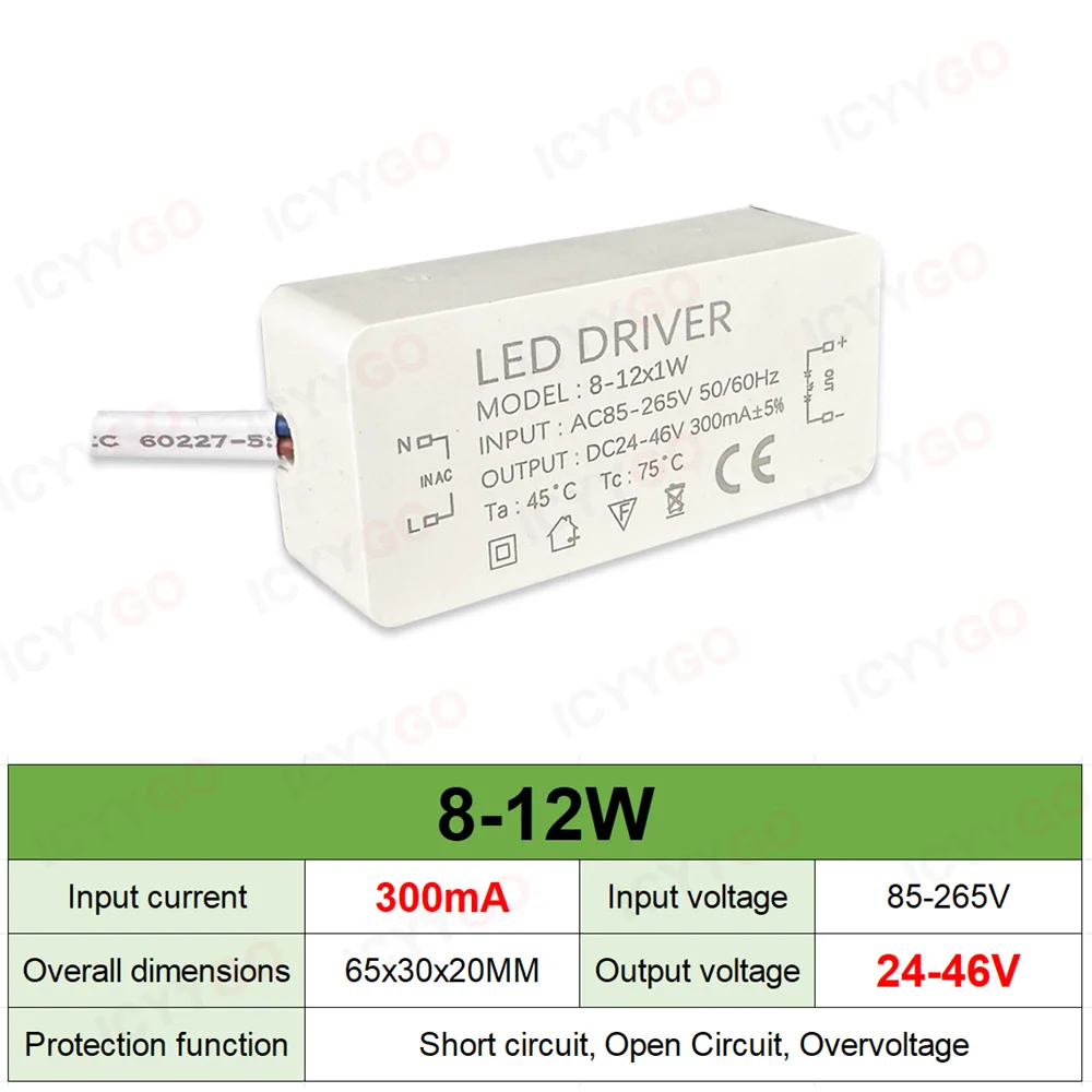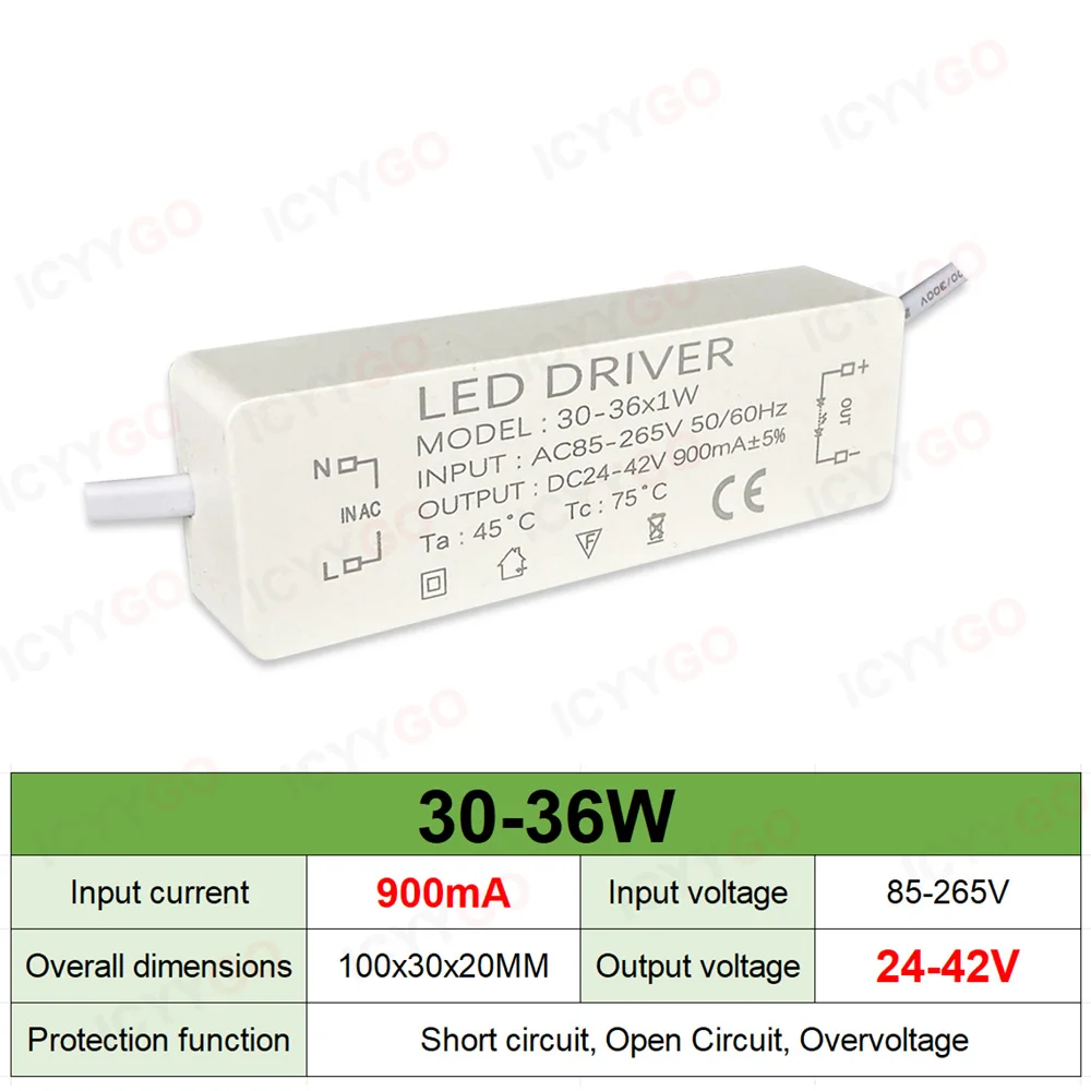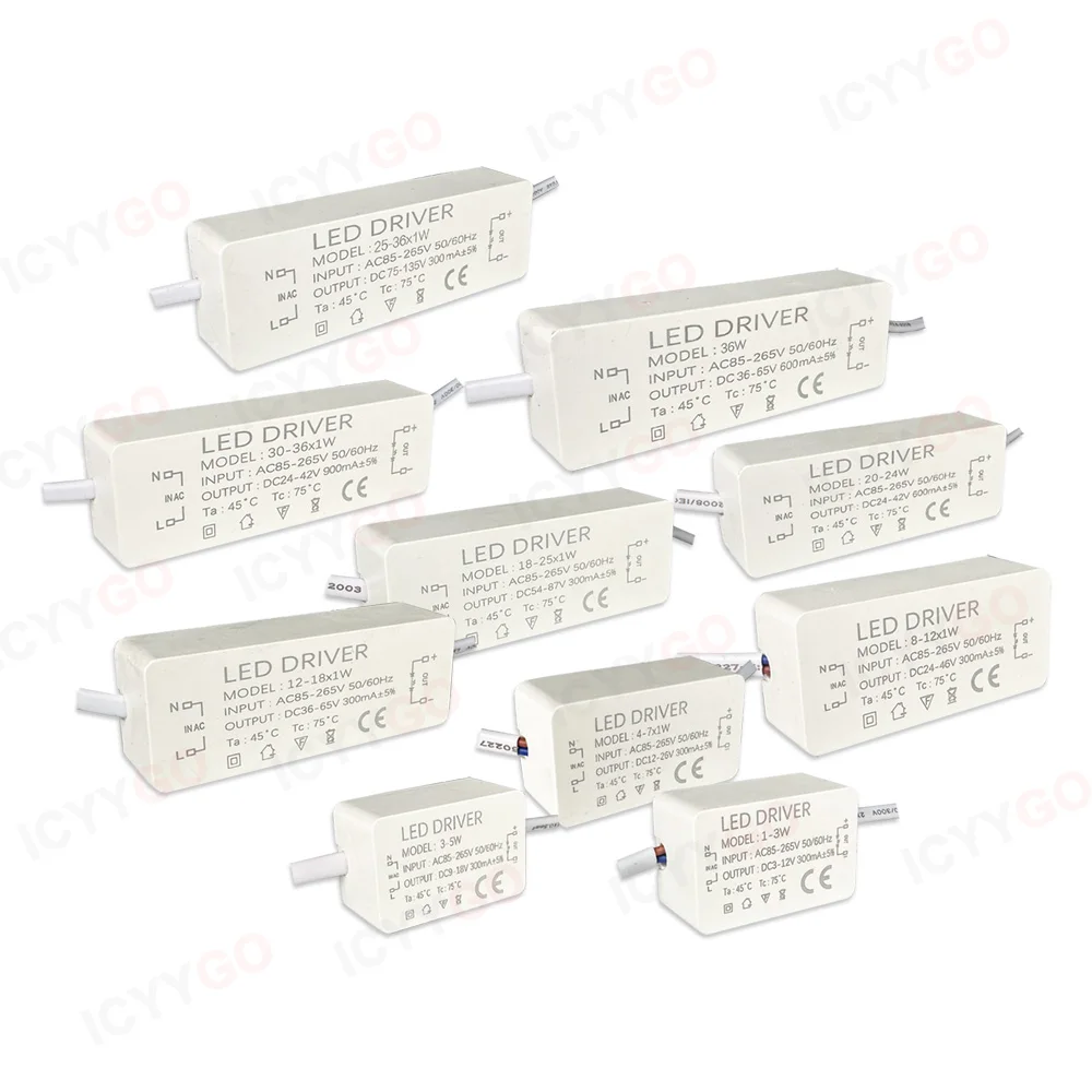 300mA 600mA 900mA LED Drivers 5W 4-7W 8-12W 12-18W 18-25W 25-36W LED Power Supply Lighting Transformer Constant Current Driver