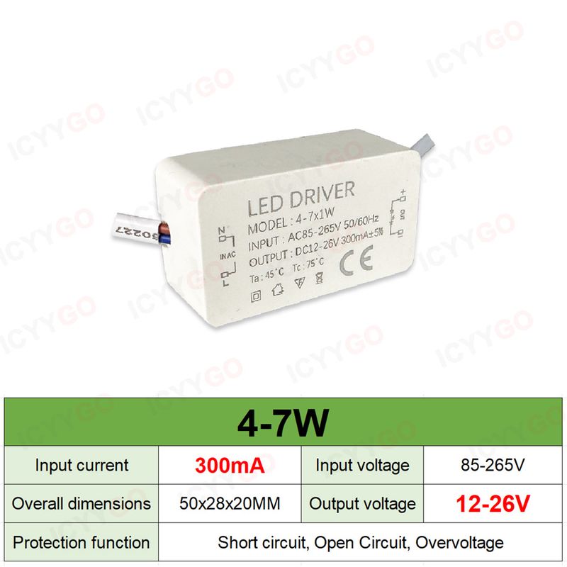 300mA 600mA 900mA LED Drivers 5W 4-7W 8-12W 12-18W 18-25W 25-36W LED Power Supply Lighting Transformer Constant Current Driver