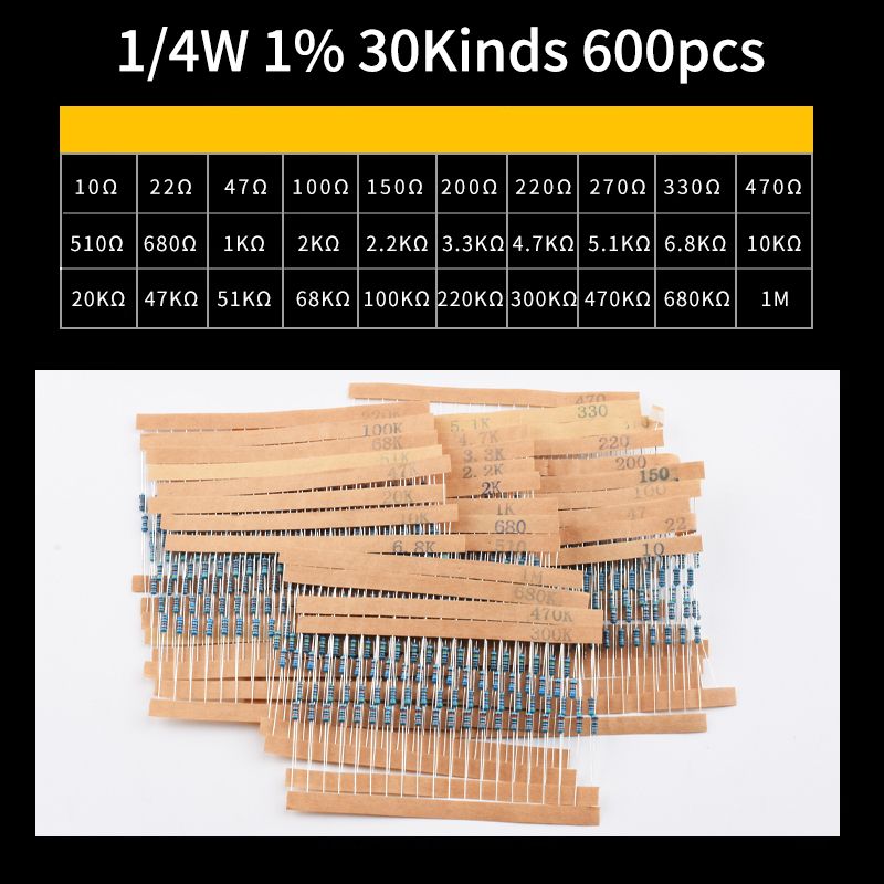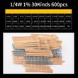 300pcs 600pcs 2600pcs 1% Resistor Set Resistance 1/4W Metal Film Resistors Kit 10Ohm ~1M Ohm 30Values Electronic Components Kit