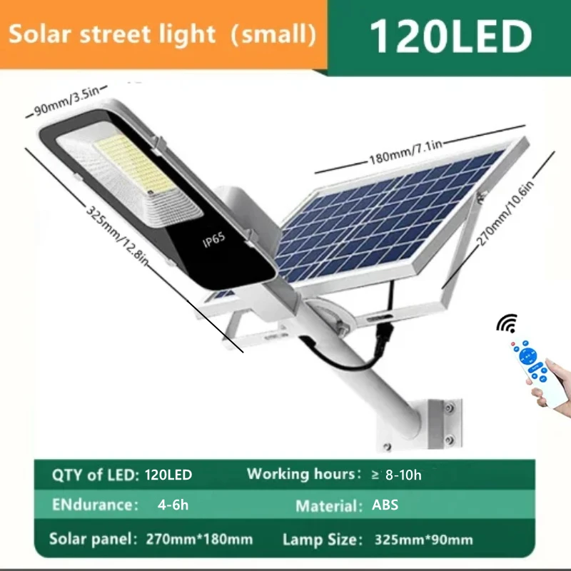 Accessories: remote control, installation screws, instruction manual, lighting fixture, solar panel. Installation bracket