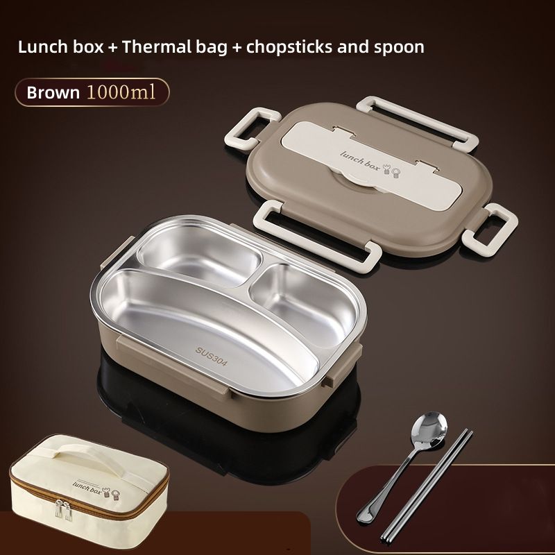 304 Stainless Steel Insulated Lunch Box Office Workers Sealed Portable Lunch Box with Bag Students Kids Commercial Bento Box Set