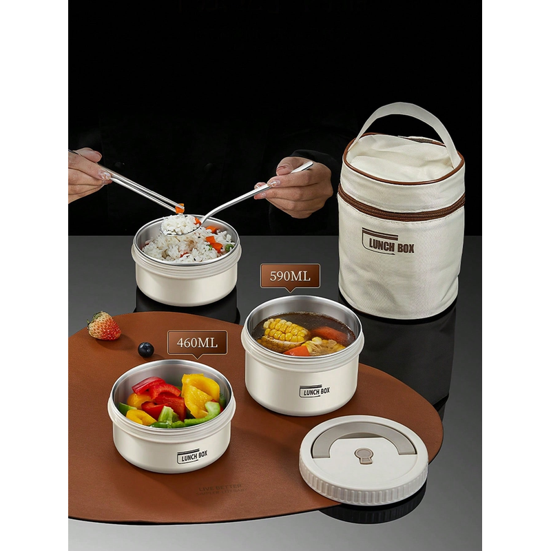 【keep food warm】the hollow layer is insulated and kept warm.The stainless steel insulated lunch box set with an insulated bag can not only keep food warm for about 2 to 3 hours, but also has a certain function of cold and fresh preservation.