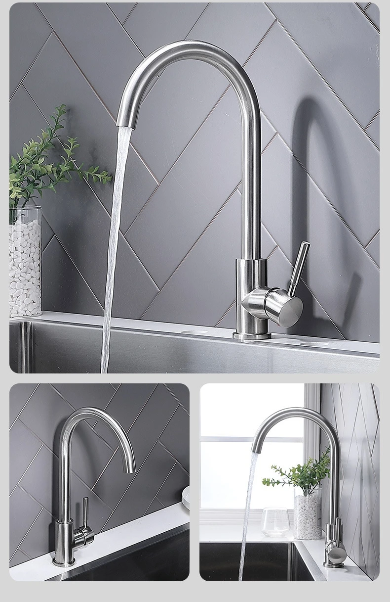 304 Stainless Steel Kitchen Faucet Hot and Cold Water Mixer 360 degree rotation Basin installation Comes with 60cm hose