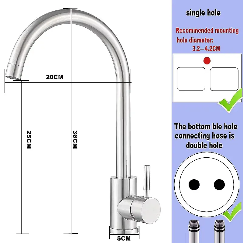 1.The kitchen faucet is made of high-quality stainless steel, which can easily cope with surface corrosion in humid environments, protect your and your family's daily health, and provide G3/8 .1/2 . 9/16 caliber connecting hose, meeting all daily usage needs.
