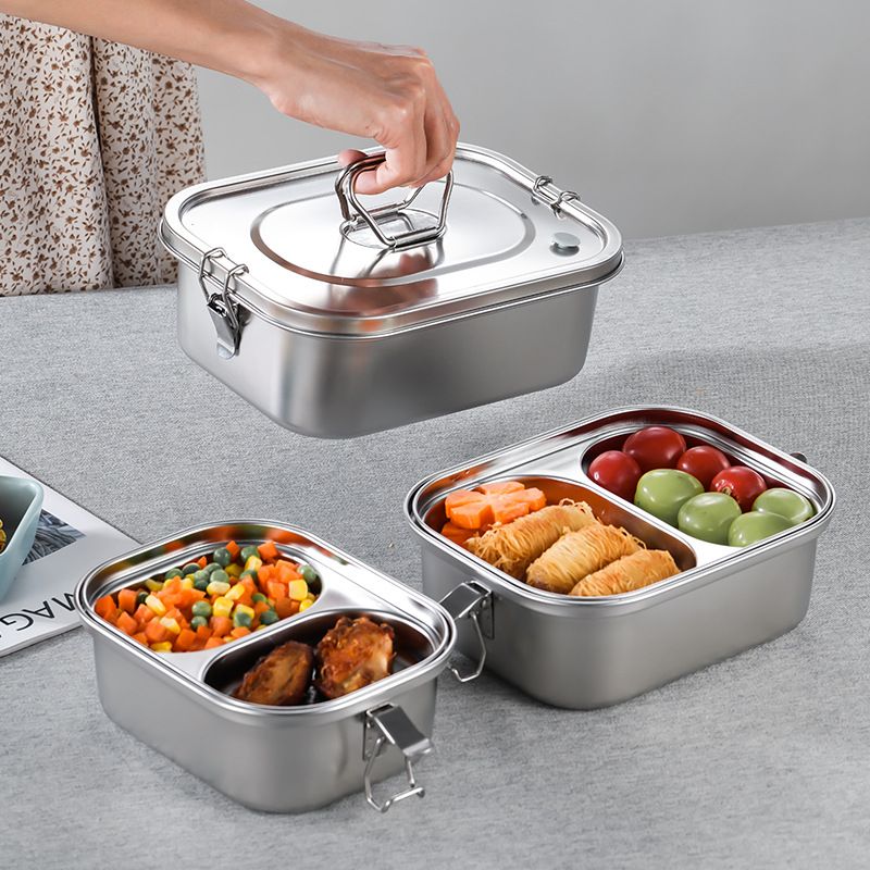 304 sealed leak-proof stainless steel lunch box rectangular three-grid double-button lunch box single-layer lunch box