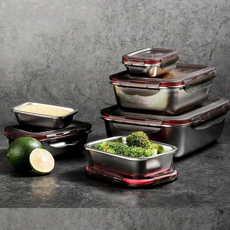 304 Stainless Steel Lunch Bento Box Sealed Leakproof Portable Food Storage Box Household Pickle Box Refrigerator Food Container