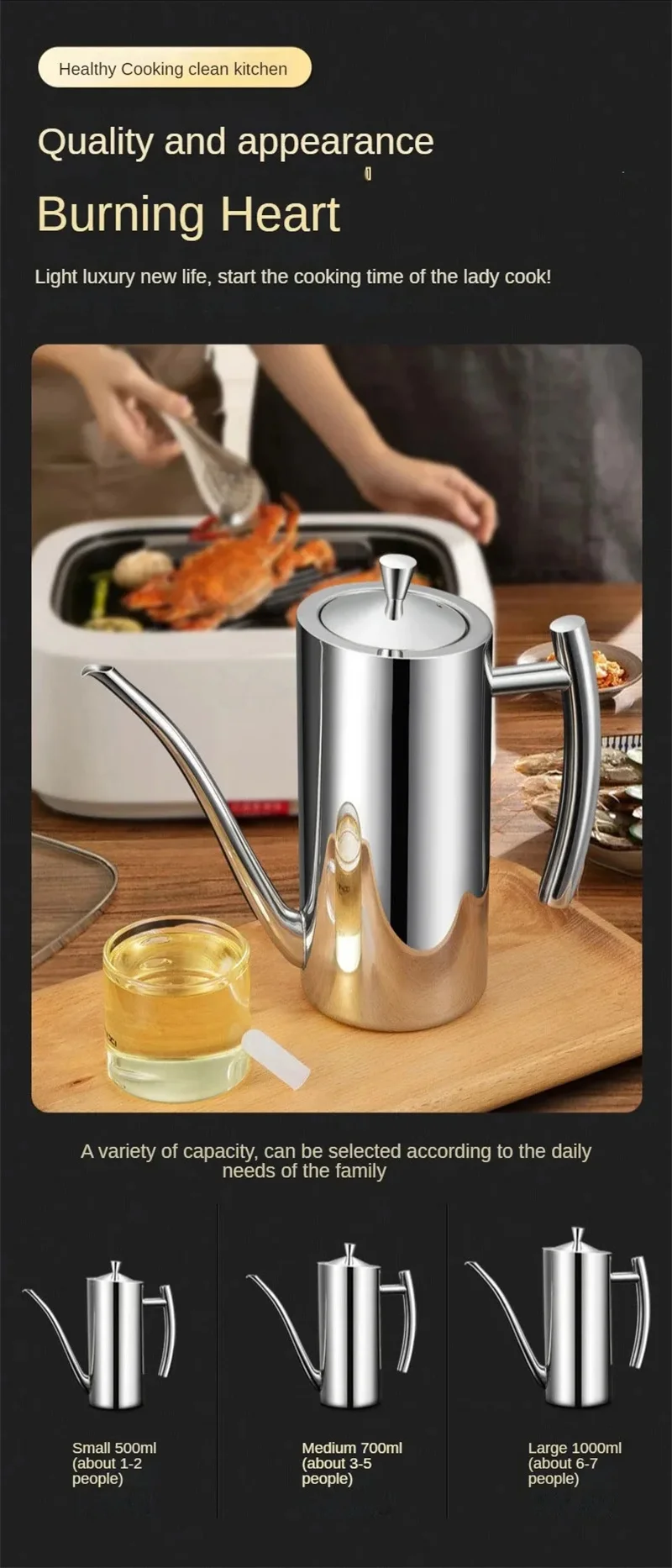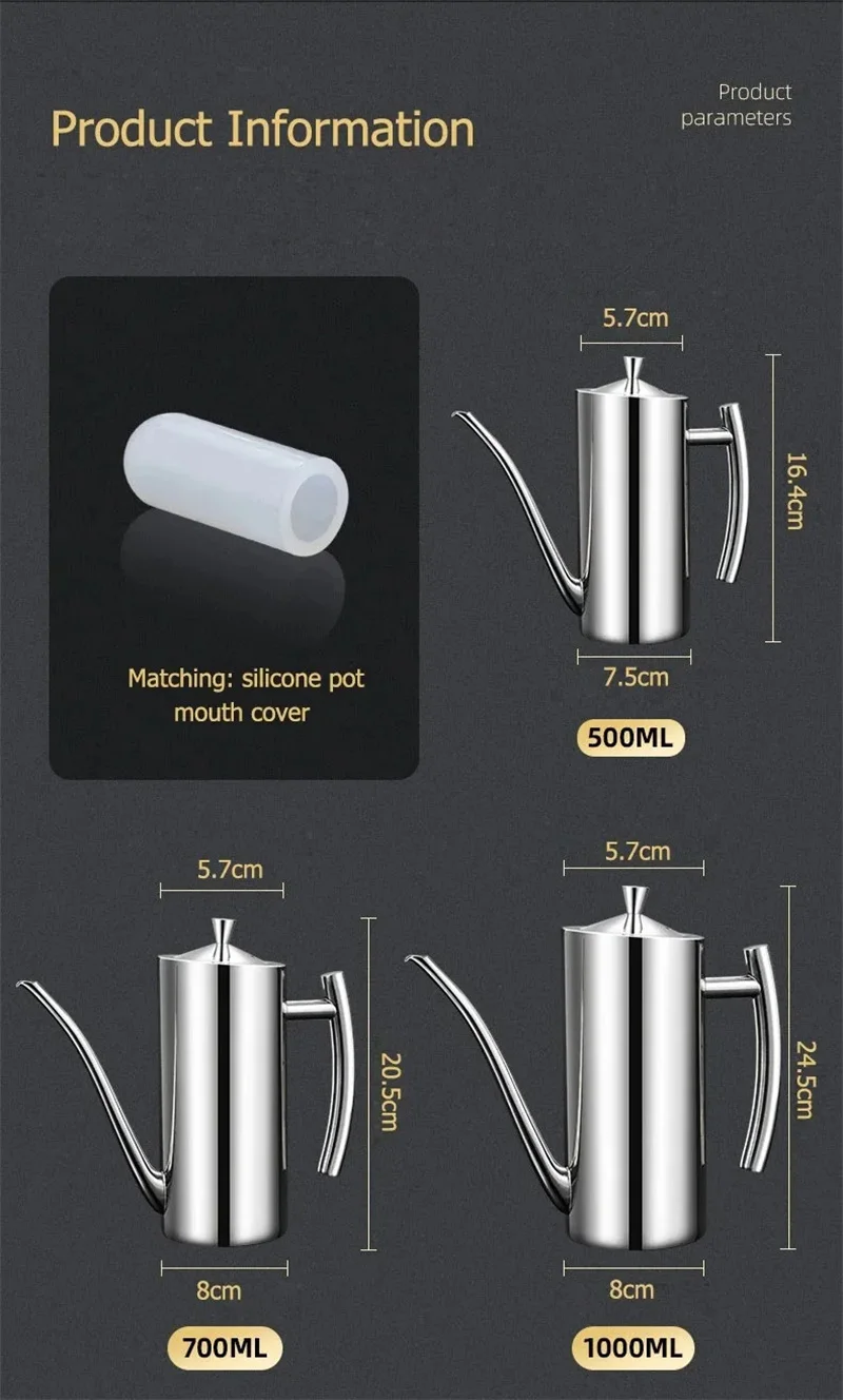 6. This stainless steel oil kettle is exquisite workmanship, very suitable for home use, is the perfect kitchen utensils.