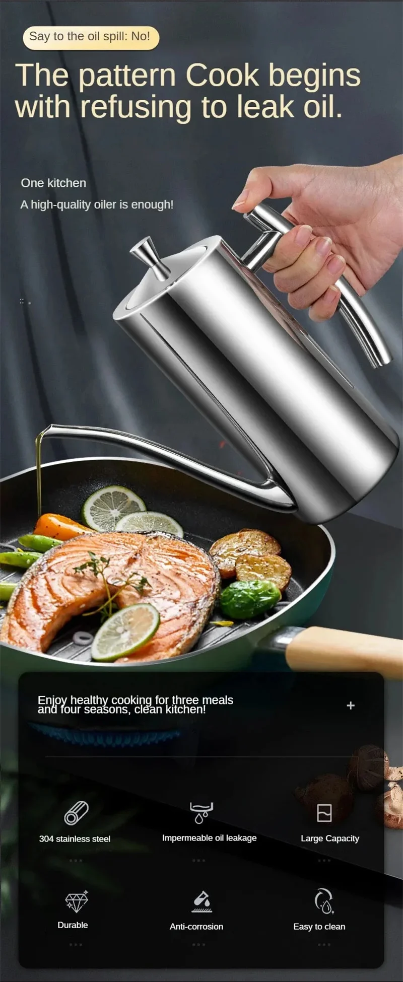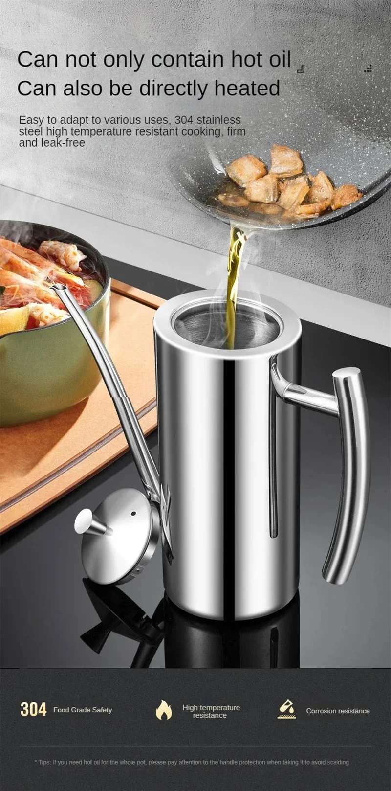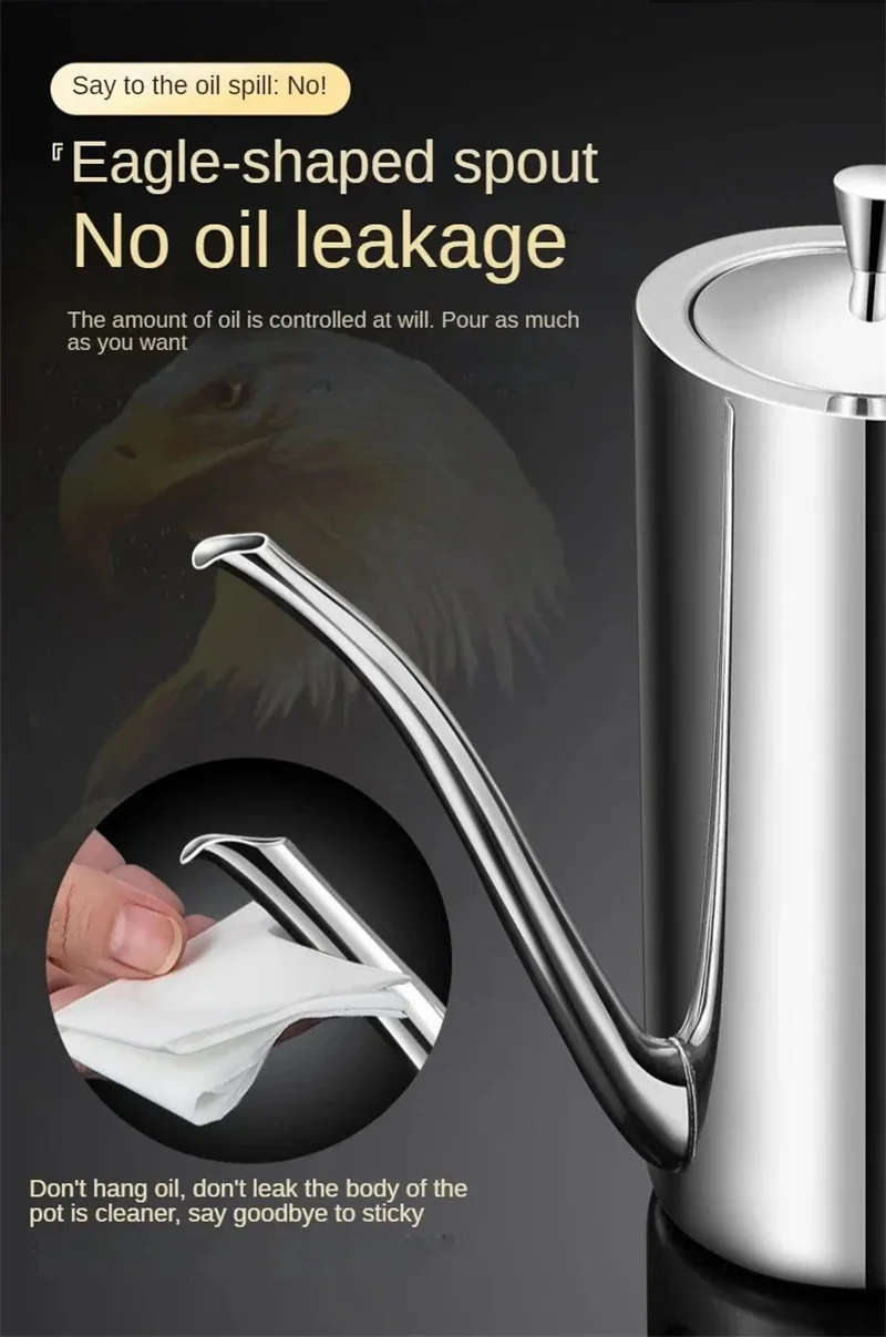 304 Stainless Steel Oil Pot Kitchen Oil Tank Sauce Vinegar Drip-Proof Dust-Proof Oil Storage Container To Store Kitchen Tools