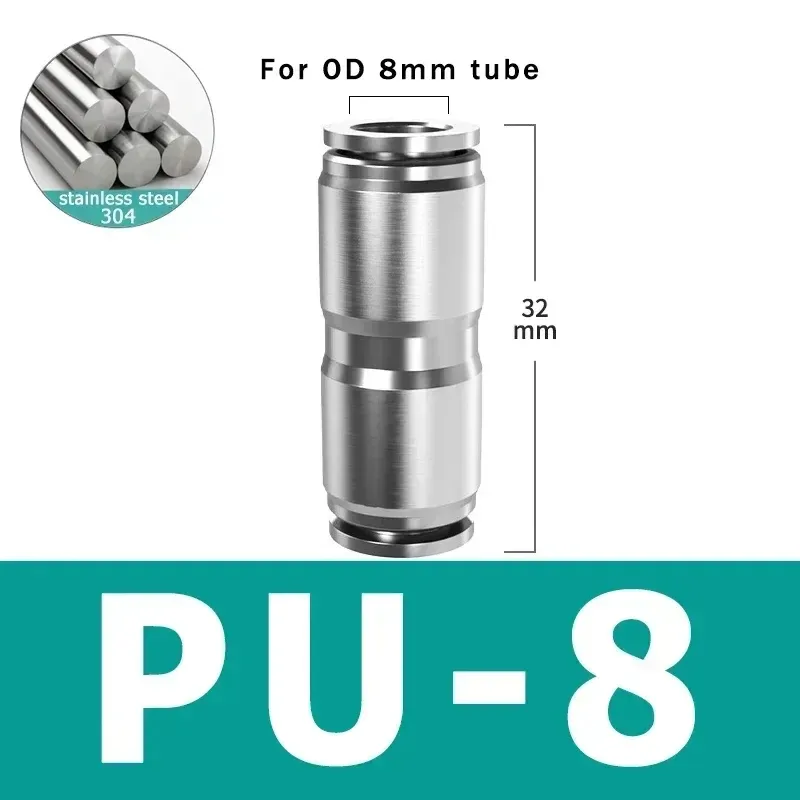 304 Stainless Steel Pneumatic Tube Connector Quick Release coupling PU Hose Hard Tube 4mm-16mm High Pressure Temperature Fitting