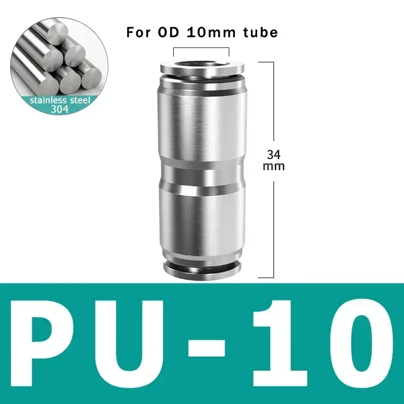 304 Stainless Steel Pneumatic Tube Connector Quick Release coupling PU Hose Hard Tube 4mm-16mm High Pressure Temperature Fitting