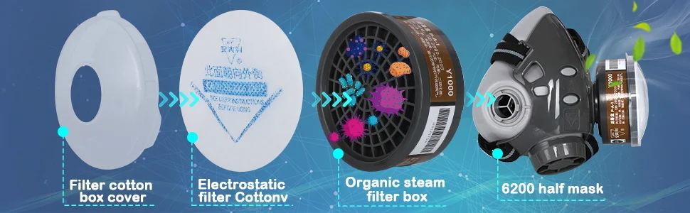 308 Face Gas Dust Mask Chemical Respirator Dual Filters Work Safety Masks Spray Paint Dust Mask With Filter Respirator Reuse