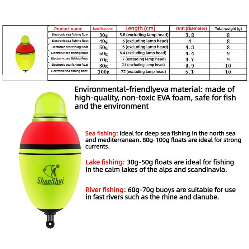 High brightness and eye-catching lamp head: LED beads have high brightness and strong penetration, and are clearly visible from a distance of 100 meters at night, without the need to frequently stare at the float.