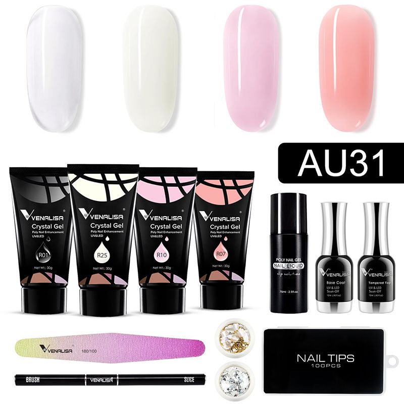 30g VENALISA Acrylic Gel VIP Kit Fast Shipment Nail Clear Camouflage Color Nail Tip Form Crystal UV Gel Slice Brush Nail Gel