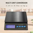 1. Features: Fruit scale, counting platform scale, weighing scale. Large size, with a large range of 30kg * 1g. The scale pan and panel are waterproof (other not waterproof), with 6 adjustable automatic shutdown times (adjustable to never shut down), an 800mAh rechargeable lithium battery, rechargeable (electronic scale Type-C interface) or plug-in for power supply, and the rechargeable battery can be disassembled and replaced. High end display screen with blue background and white text, black scale body+gold border black film, simple and atmospheric; High range and high precision.