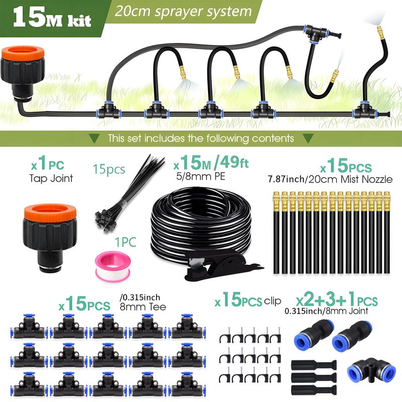 30M-5M DIY Free Bending Universal Sprayer Kit 8mm Hose Patio Misting Cooling System for Garden Plant Fogging Watering Irrigation