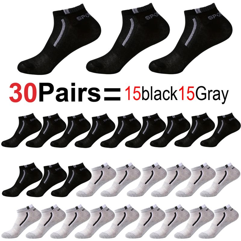 30Pairs Men Socks Mesh Breathable Short Casual Socks Color-block Sports Sock Sports Socks Absorb Sweat Ankle