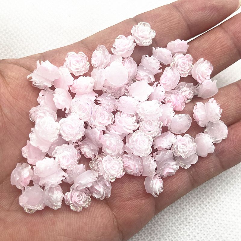 30pcs 13mm High Quality Glitter Resin Rose Flowers for Jewelry Making 3D Nail Accessories Handmade DIY Nail Art