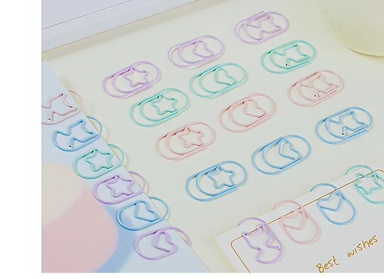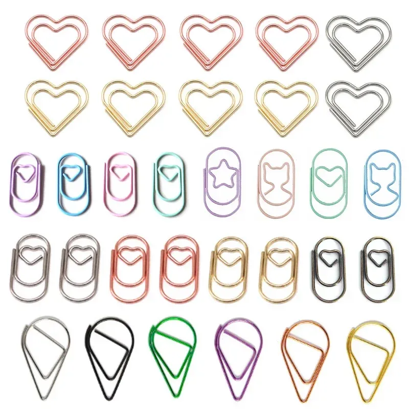 30pcs/pack Colorful Multi Shaped Heart-shaped Paper Clips, Colorful Macaron Mini Shaped Paper Clips