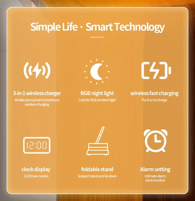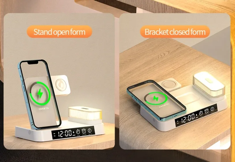 • Wireless Charging Station :Charge your devices wirelessly with this charging station.