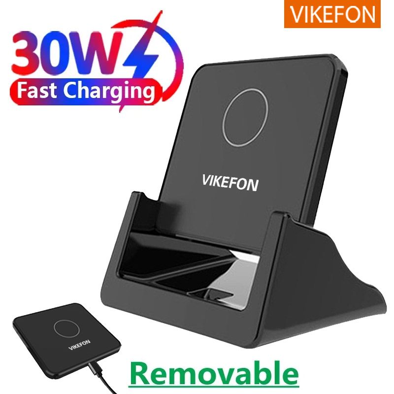 30W Wireless Charger Pad Stand Desktop Ultra-thin Mobile Phone Fast Charging Dock Station For iPhone 15 14 13 12 Samsung Xiaomi