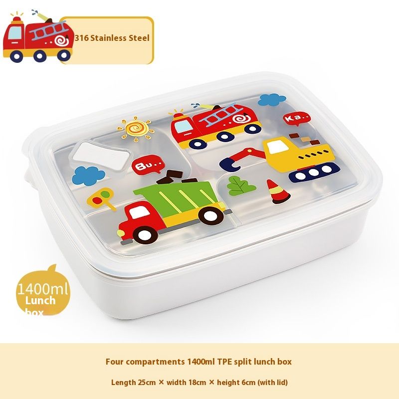 316 Stainless Steel Compartment Children's Insulated Lunch Box 316 Car Four Grid 1400ml