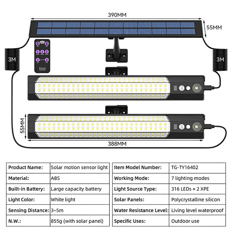 Solar panel size: 390 * 53mm polycrystalline silicon laminated, 5.5V 2.6W